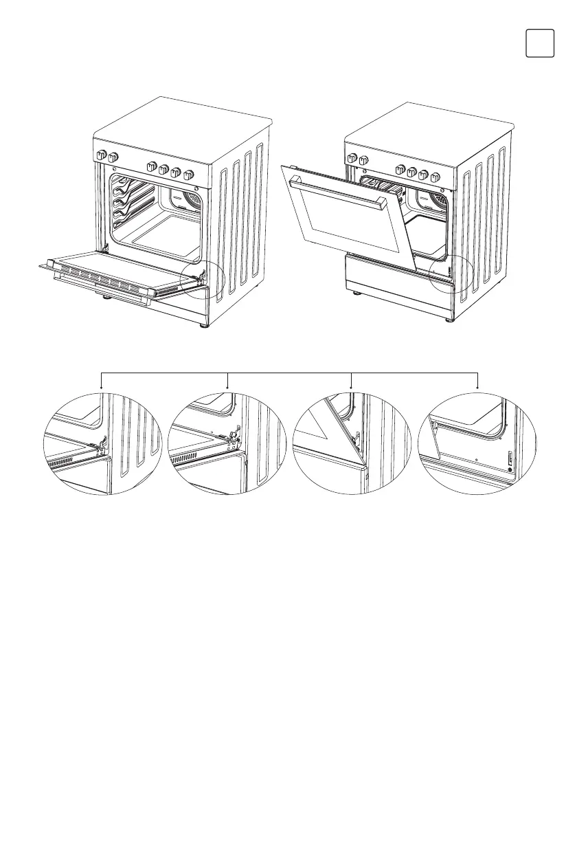 In order to re-place the oven door, perform the abovementioned steps in reverse.