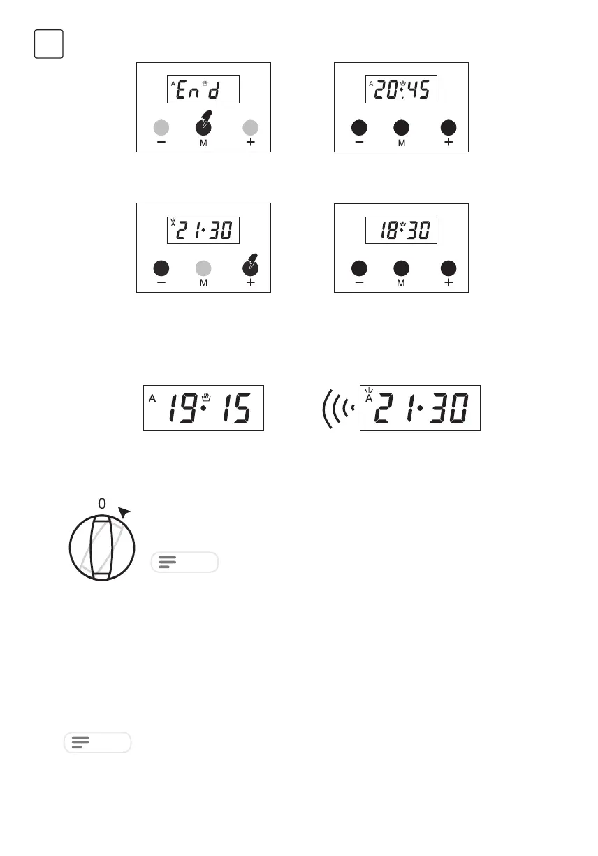 împreună cu simbolul „A”. Orice program de gătit în desfășurare va fi, de asemenea, anulat. Ceasul va apărea la