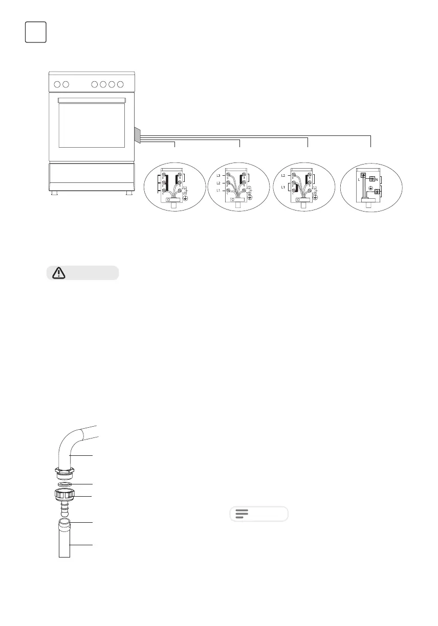 5. Pri nameščanju štedilnika na mesto priključitve ga