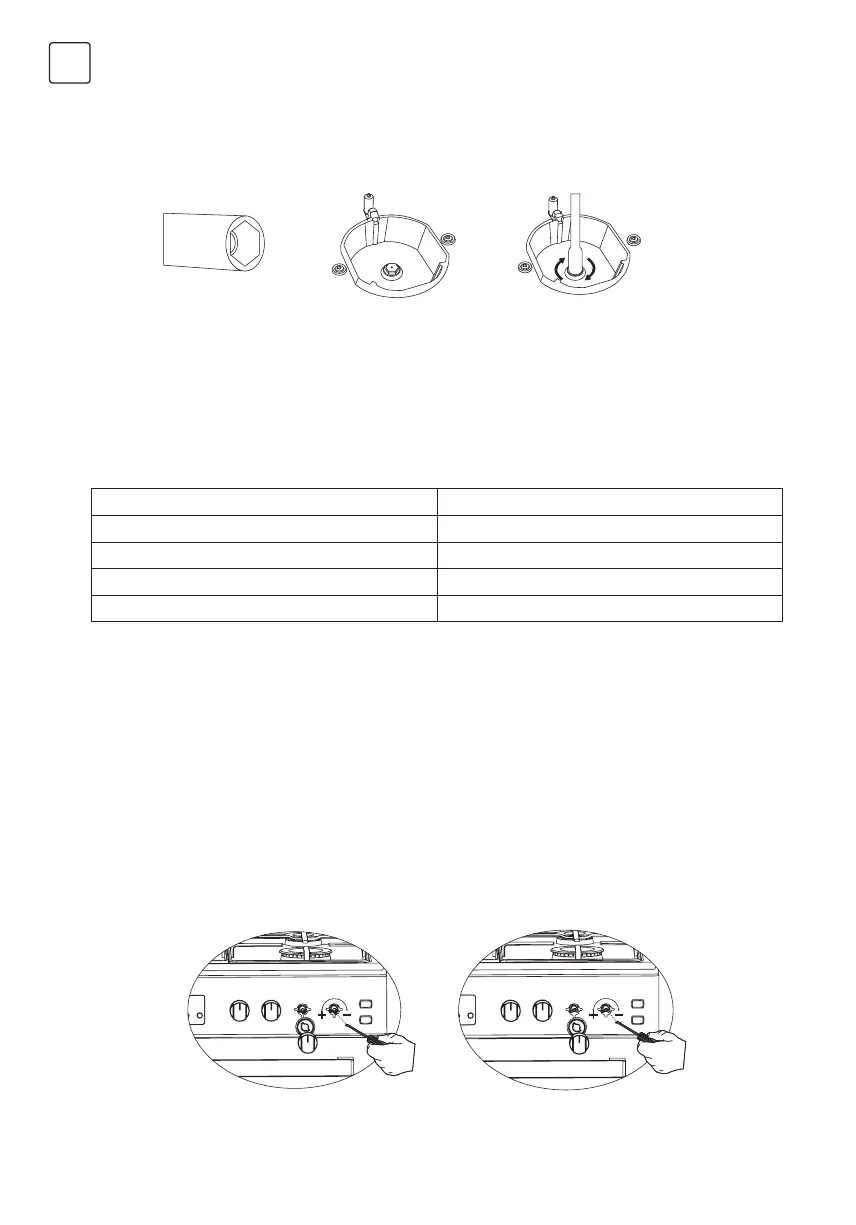 plin (butan-propan) zavrtite vijak v smeri urinega kazalca. Za zemeljski plin zavrtite vijak enkrat v levo.