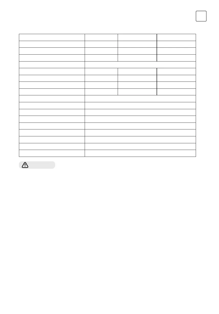 • OPOZORILO: Pri prilagajanju, ki ga bo izvedel pooblaščeni servis, je treba upoštevati to preglednico.