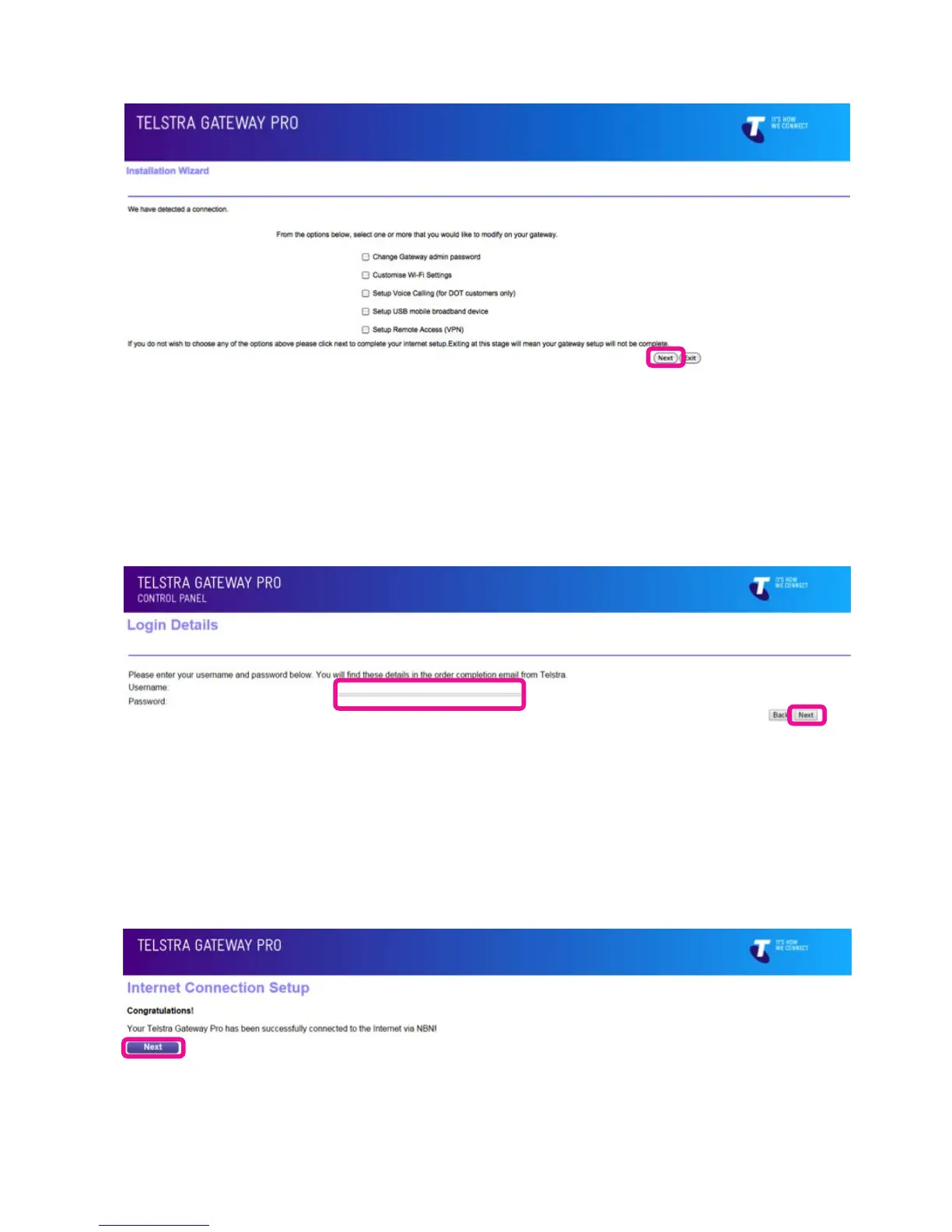 in your order completion email from Telstra and click Next.