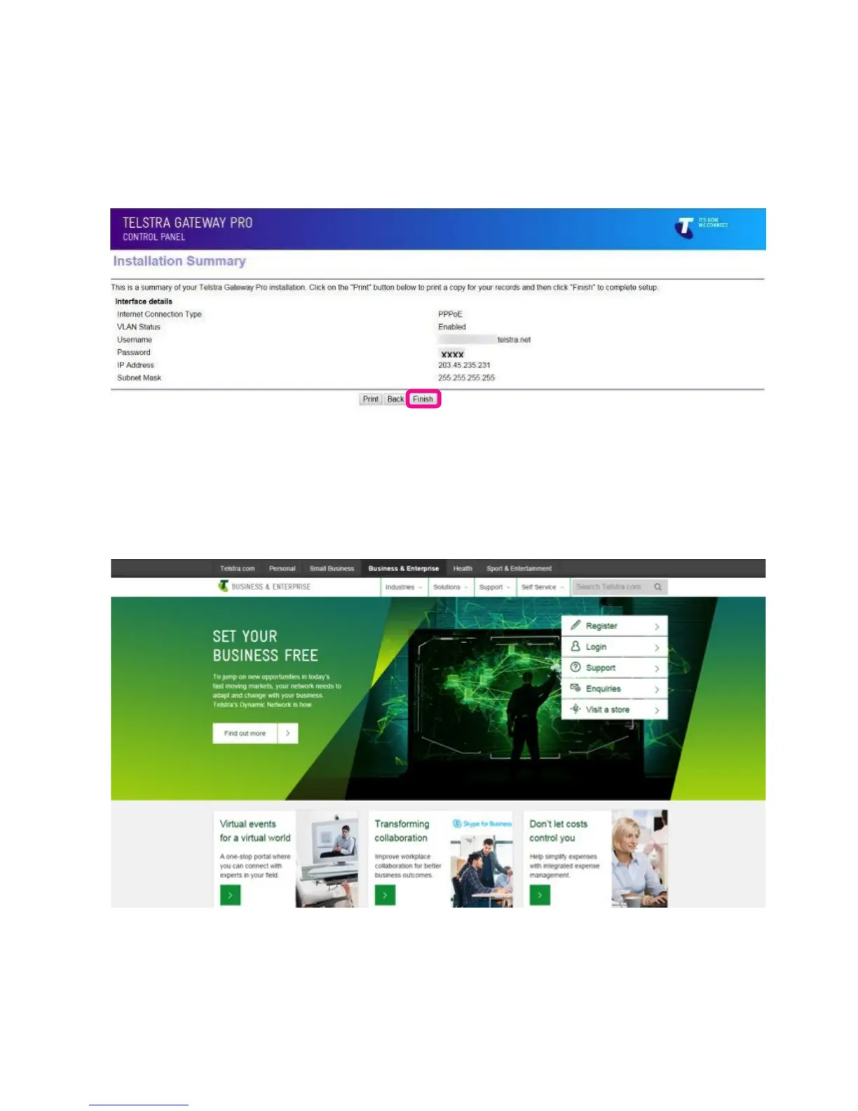 • When installation is complete the Telstra Business Website will load. You are now connected to the