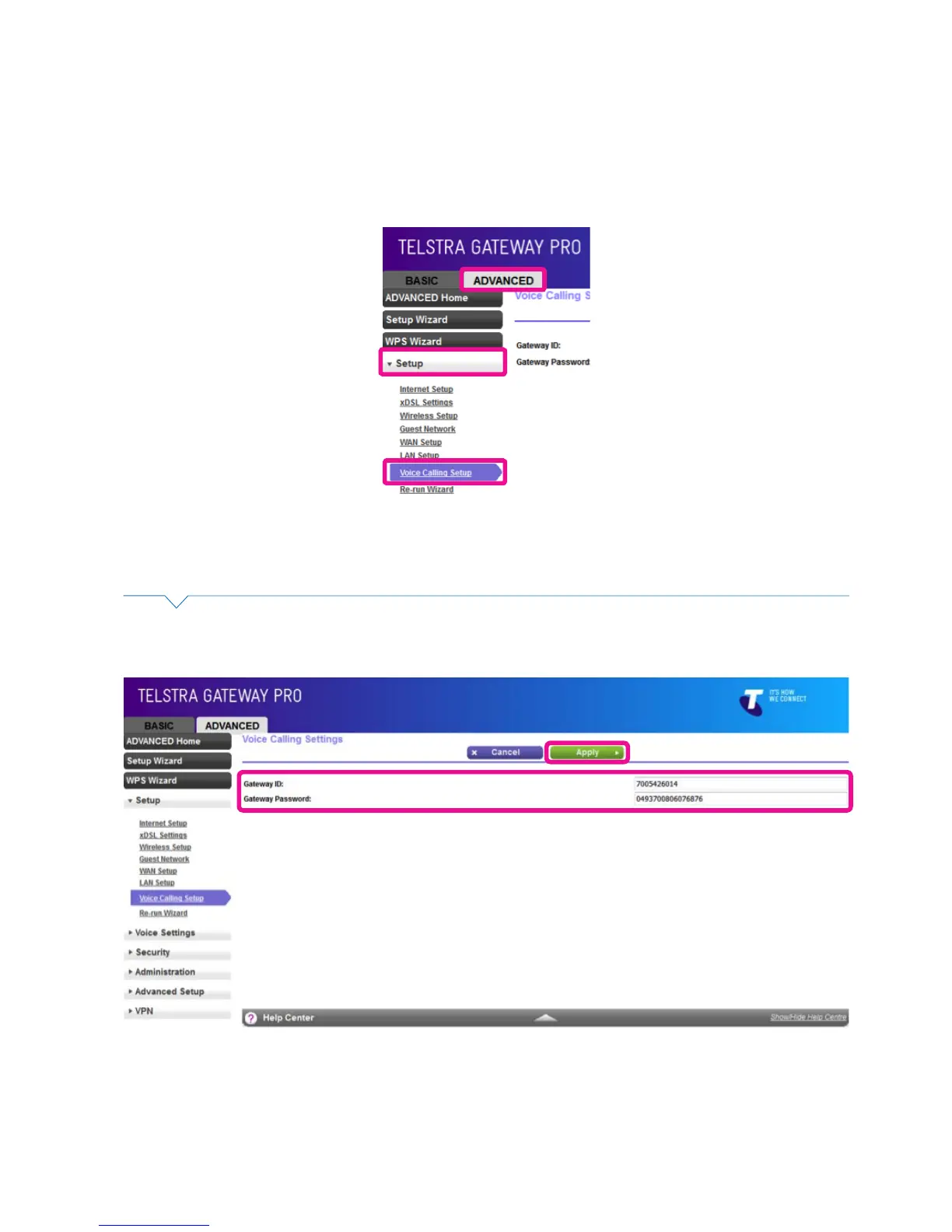 • Enter your Gateway ID and Gateway Password details on the Voice Calling Settings screen.