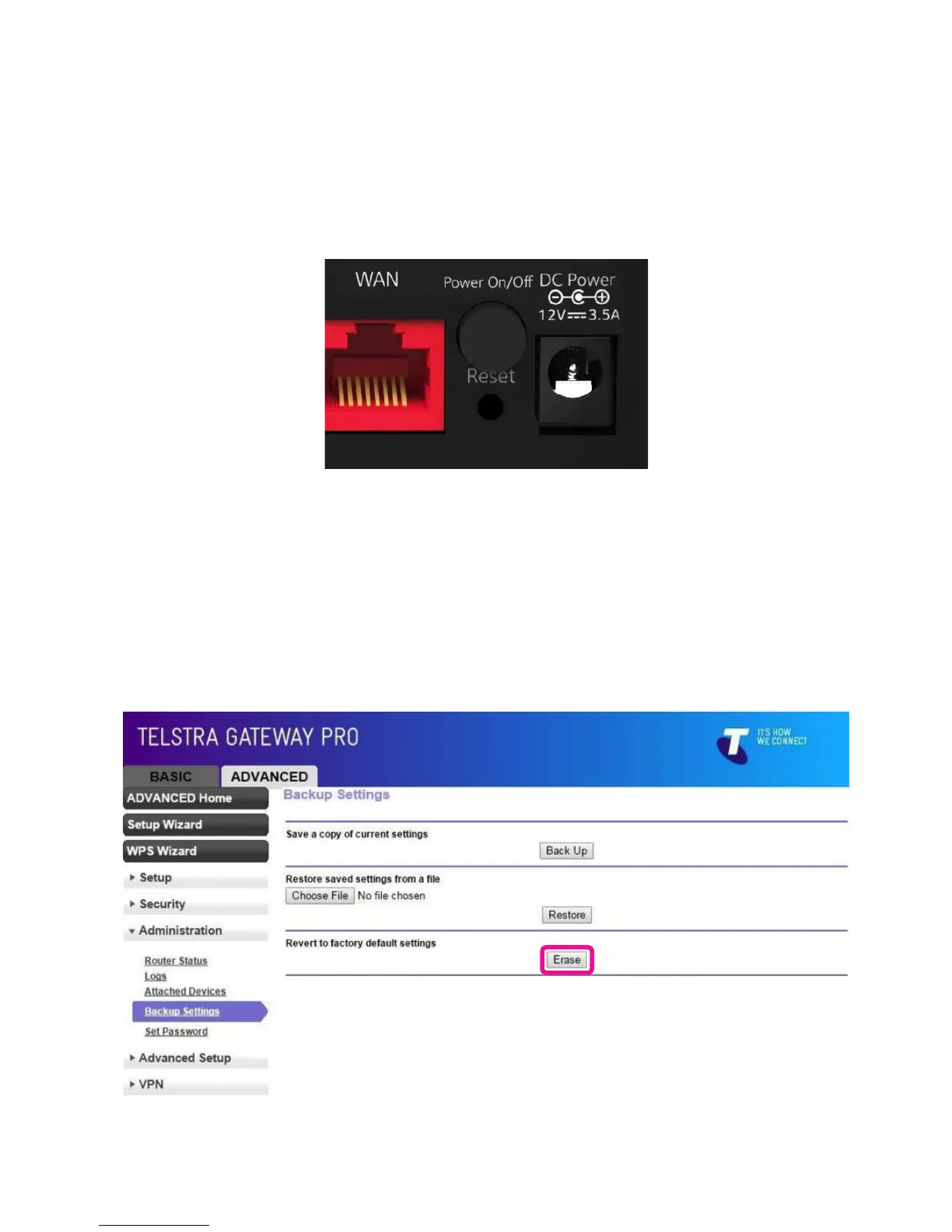 There are 2 ways to perform a factory reset on the Telstra Gateway Pro™: