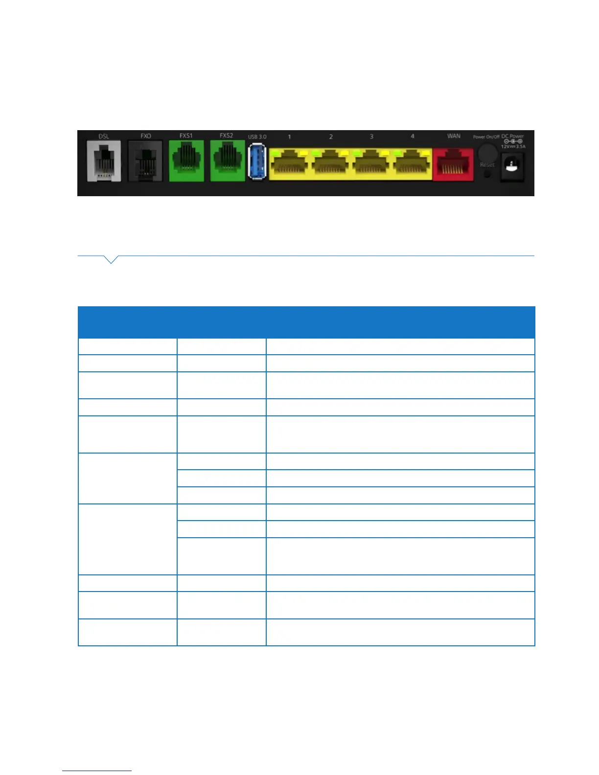 FXS1 port None Plug an analogue phone / device into this port when voice is enabled