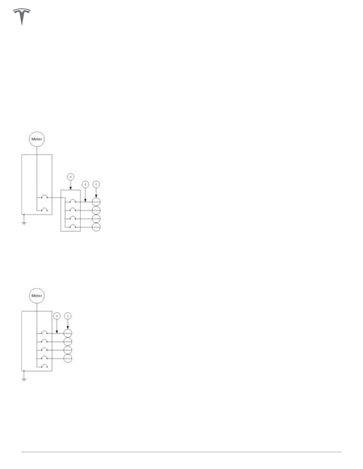 See below for examples of Wall Connector power sharing diagrams (one with sub-panel and one without).