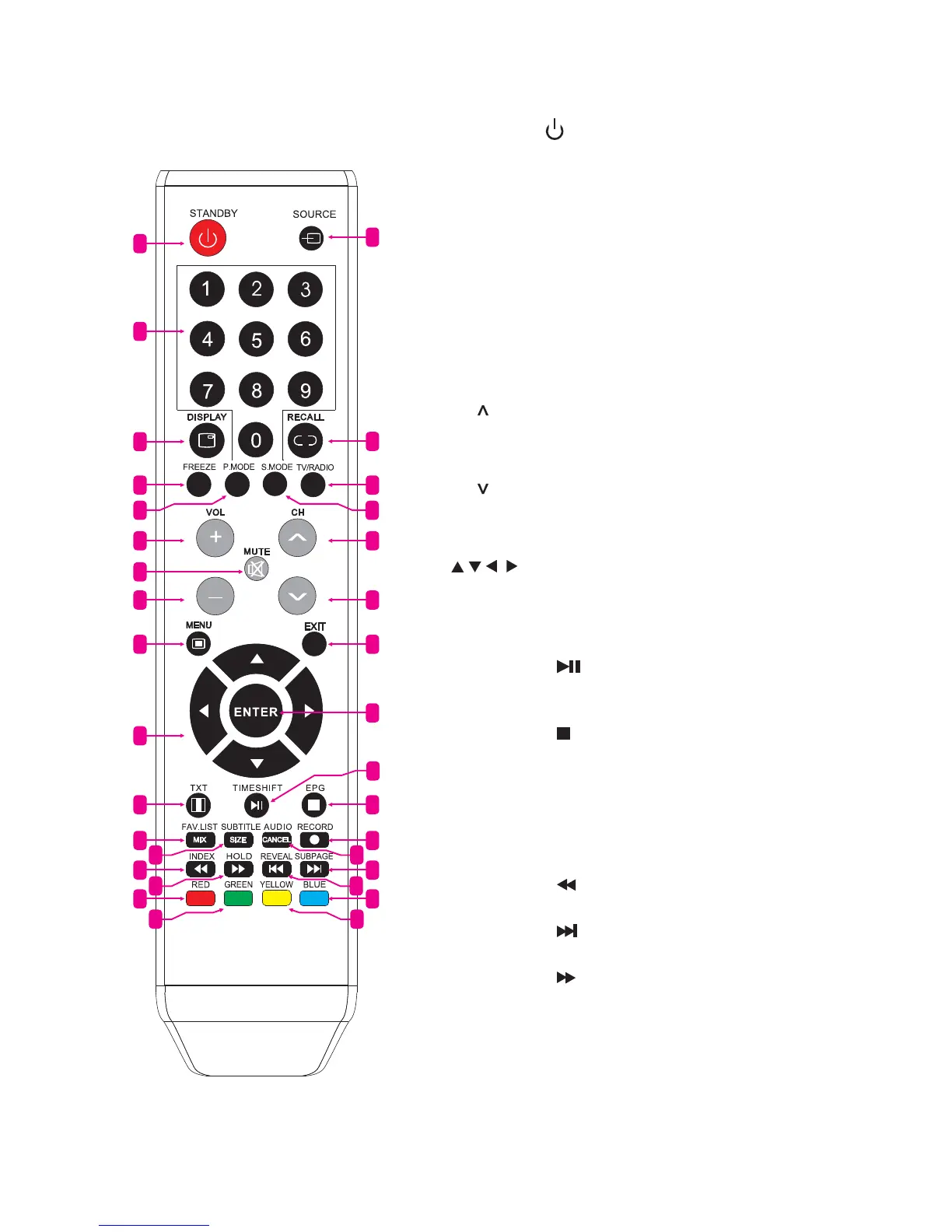 21. EPG Enter or exit EPG (Electronic Program Guide).