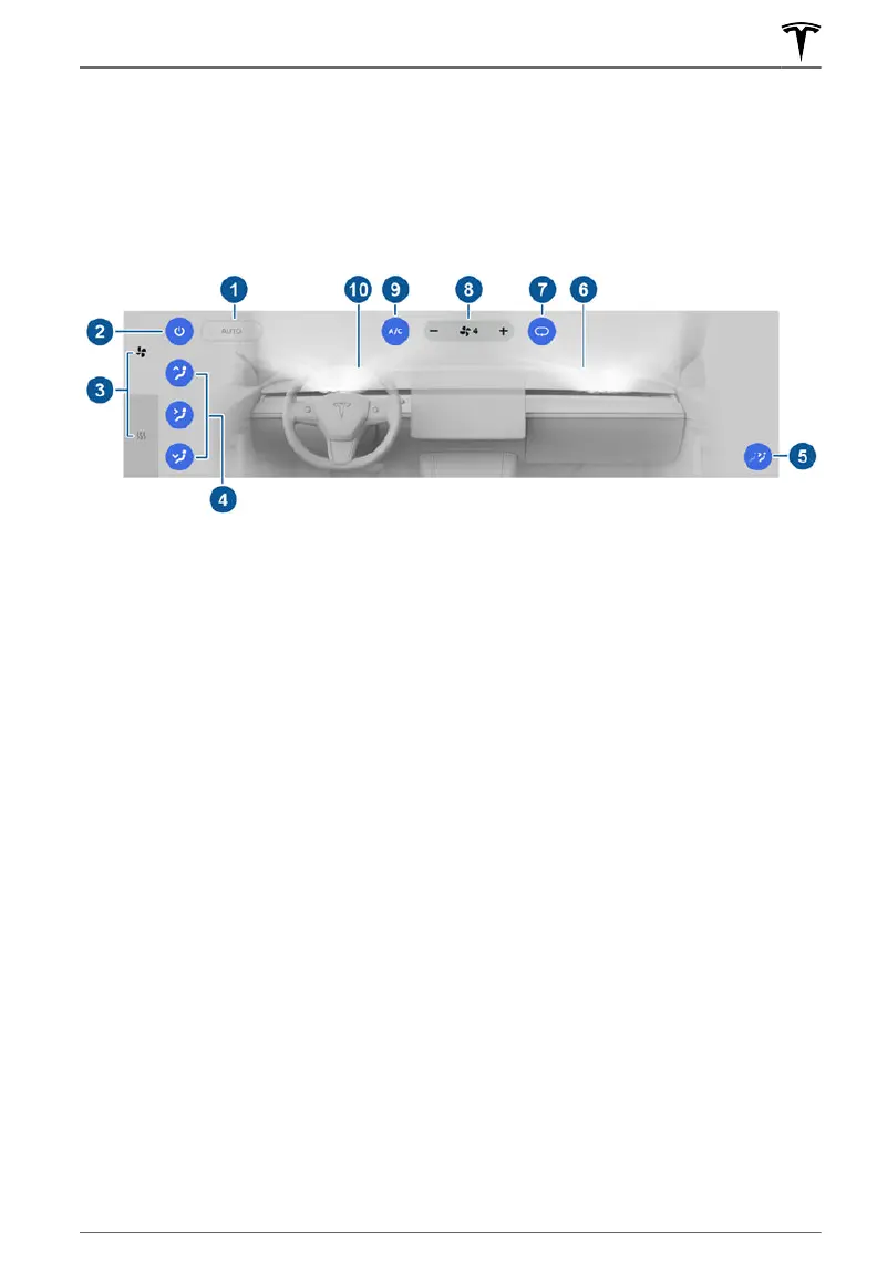 5. Touch to turn air flow to the rear cabin area on or o. When on, air flows from the vents
