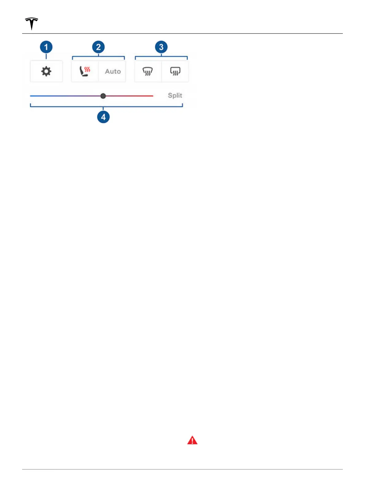 the temperature icon on the bottom of the touchscreen or the main climate controls screen to adjust. Touch Split