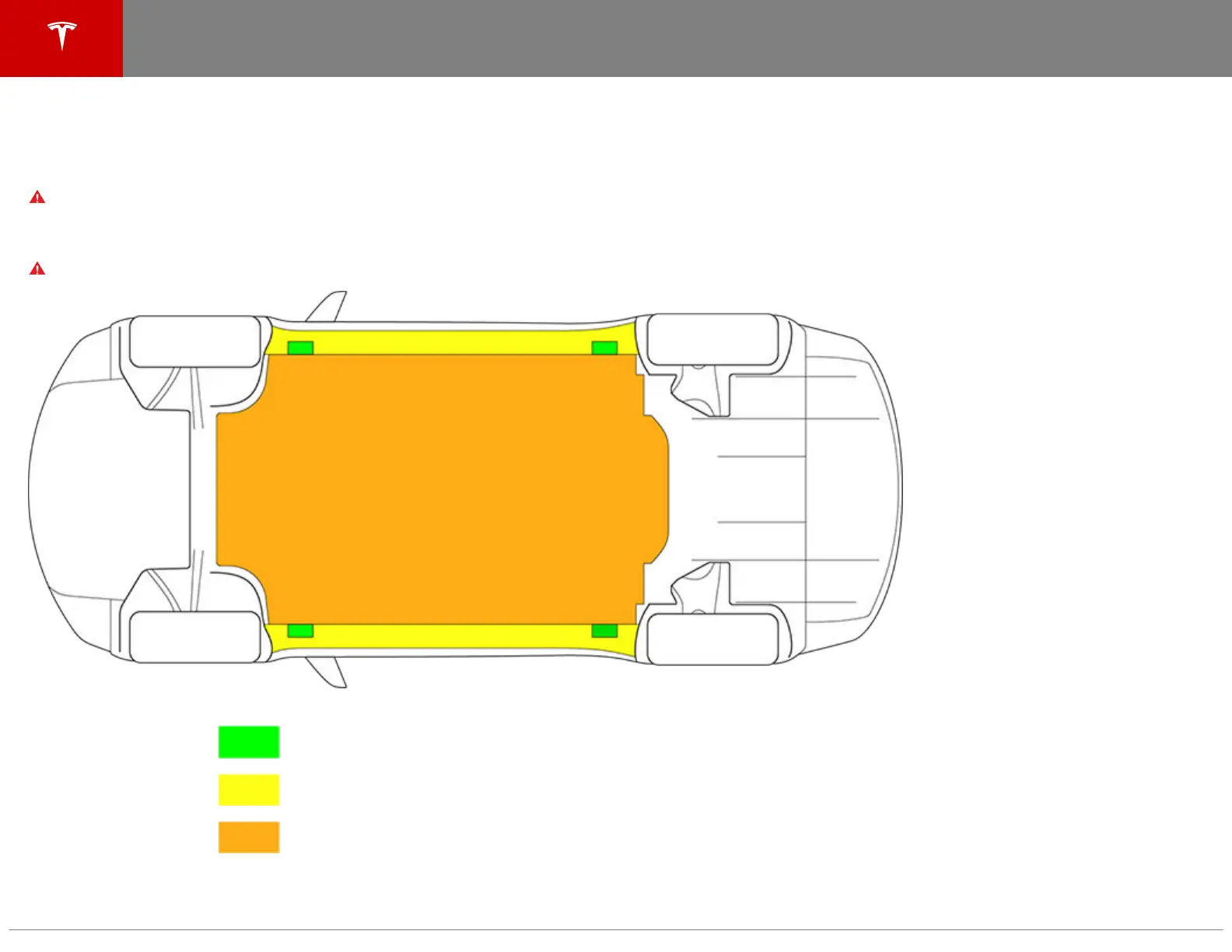 lifting or stabilizing Model S, only use the designated lift areas, as shown in green.