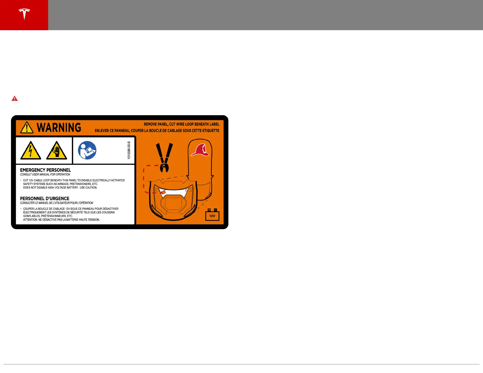 Warning: Not every high voltage component is labeled. Always wear appropriate PPE when cutting Model S. Failure to follow these