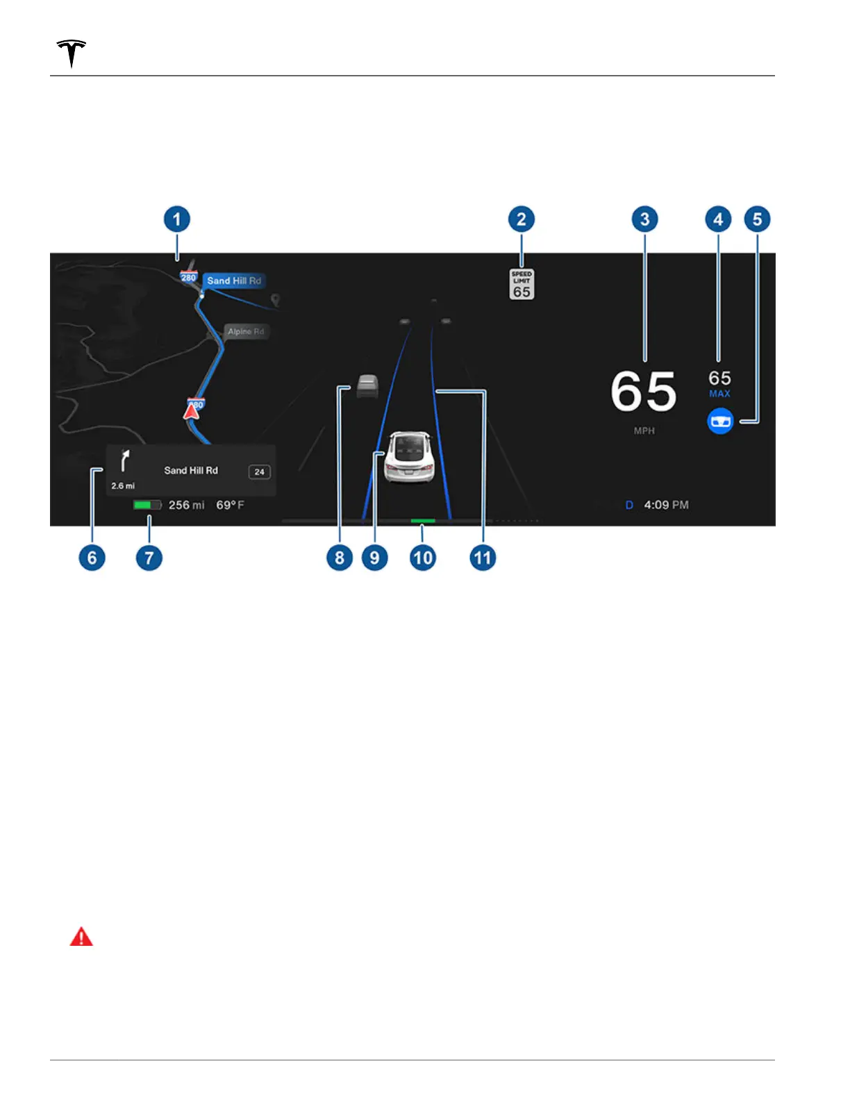 visualization of the road as detected by the Autopilot components (see About Autopilot on page 81). The