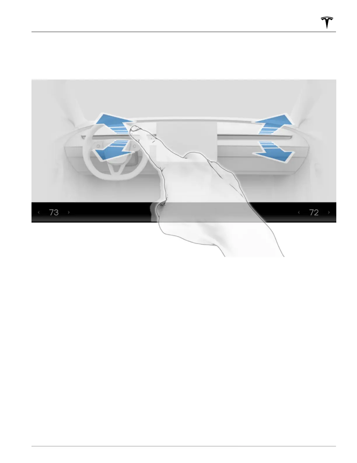 direction of the air flow, touch and drag the radiating air waves from the corresponding vent on the touchscreen. The air flows