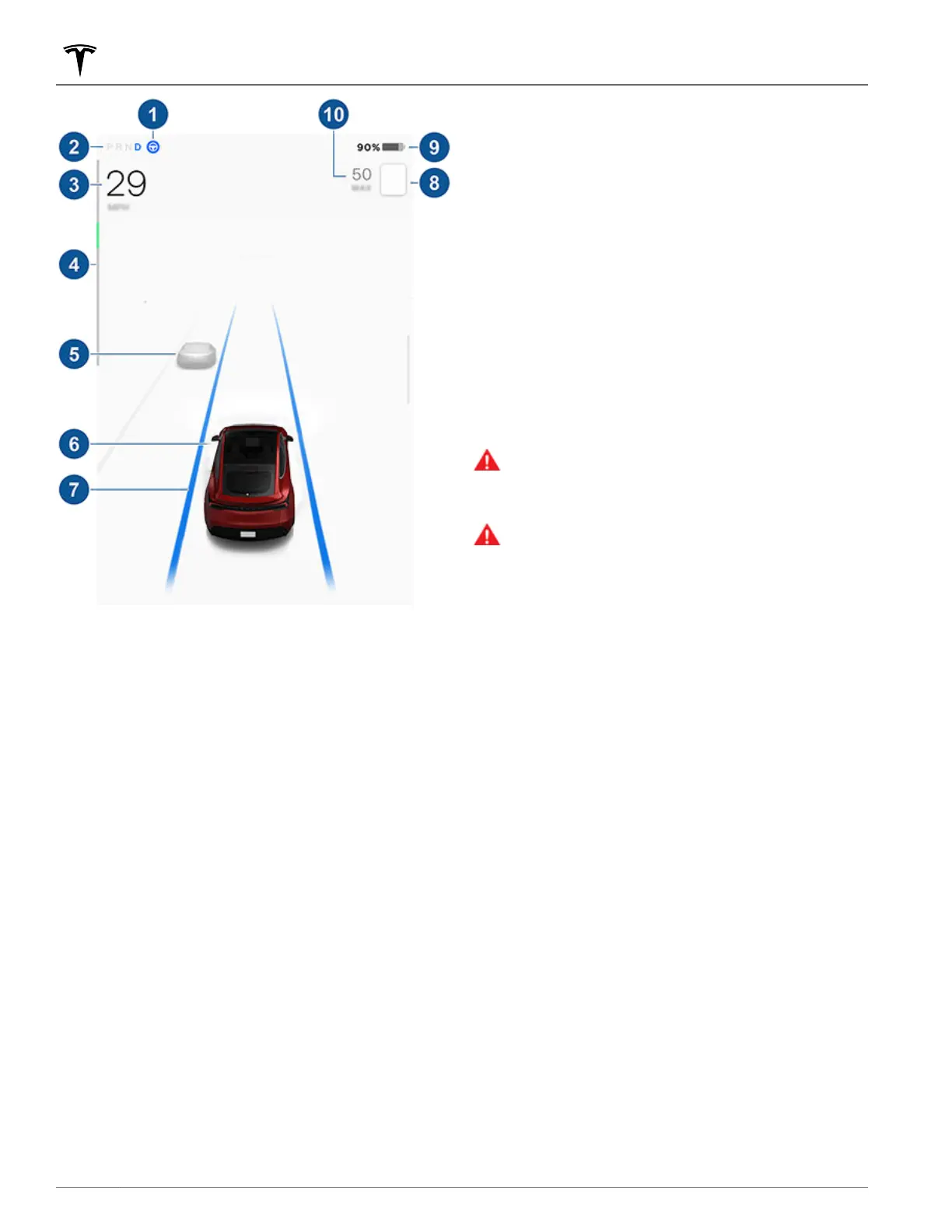 2. Currently selected drive mode: Park, Reverse, Neutral, or