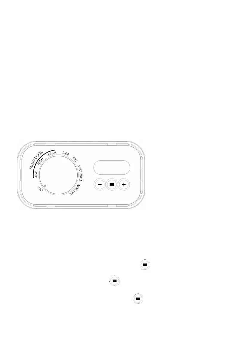 Ko vklopite aparat, izberite program kuhanja tako, da zavrtite gumb na sprednji plošči. Čas in