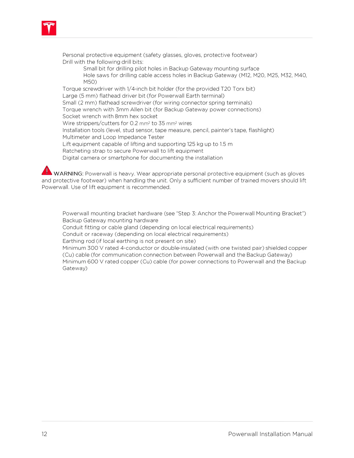 Tesla Powerwall 2 - Required Tools and Supplies