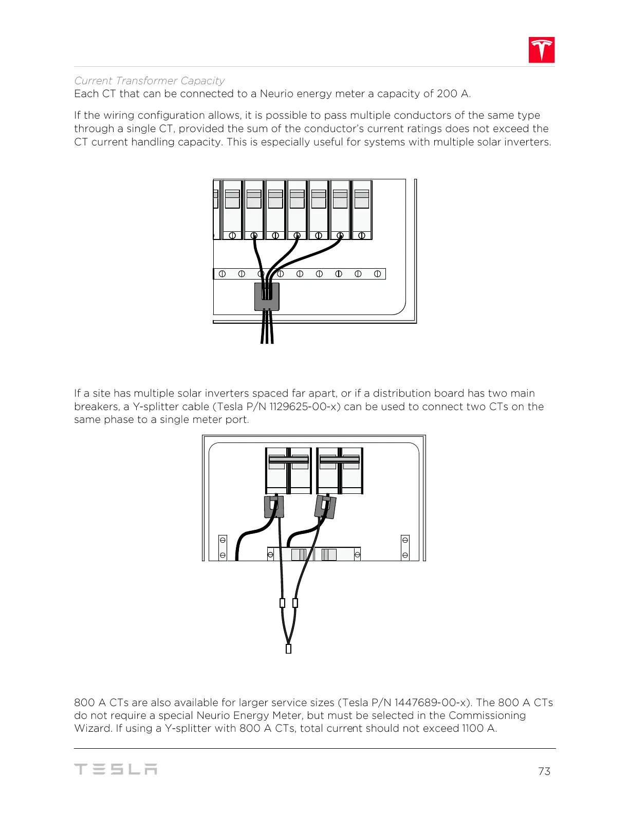 Tesla Powerwall 2 - Current Transformer Capacity; Multiple Conductors Passing through a Single CT; Y-Cable Connecting Cts