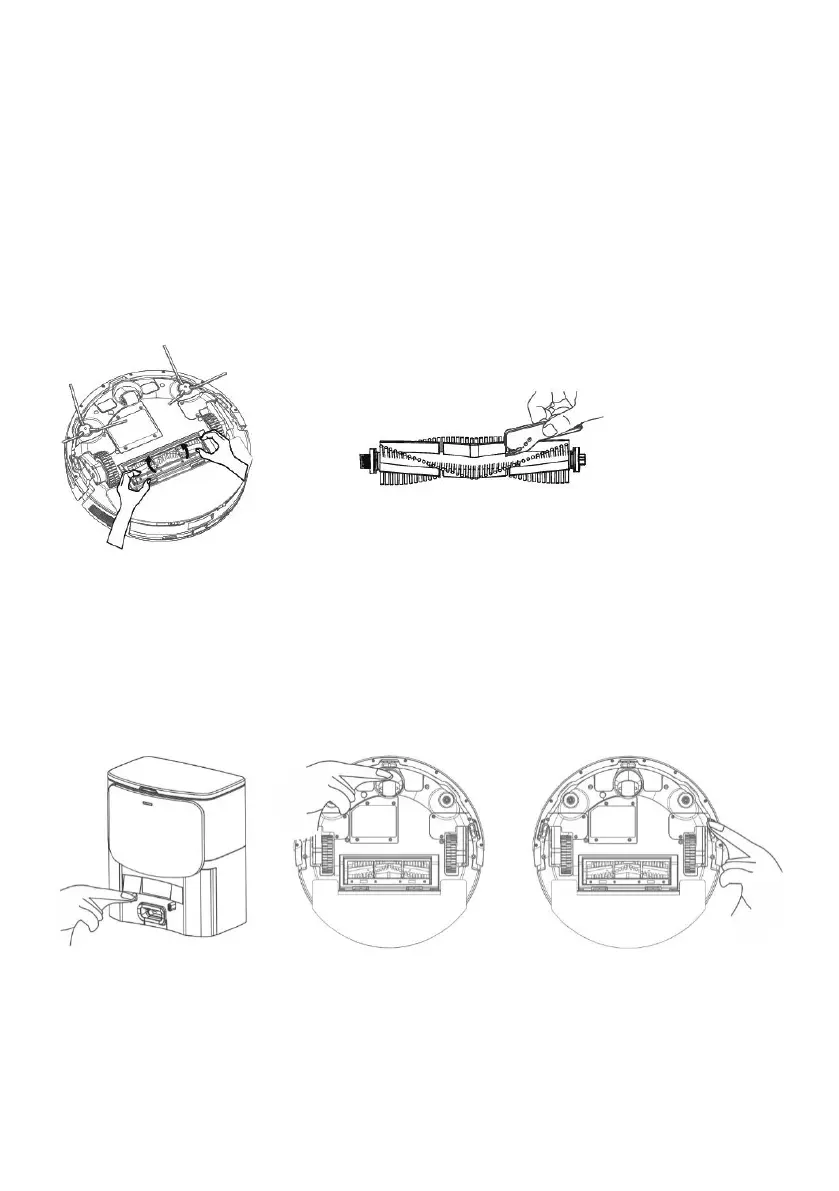 verfangen haben. Halten Sie die mittlere Reinigungsbürste frei von großen Mengen an Haaren, Staub,