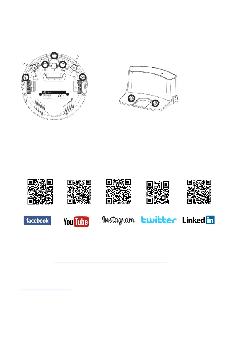 Rovnakým spôsobom čistite aj tri senzory na spodnej strane vysávača, označené body v koliesku