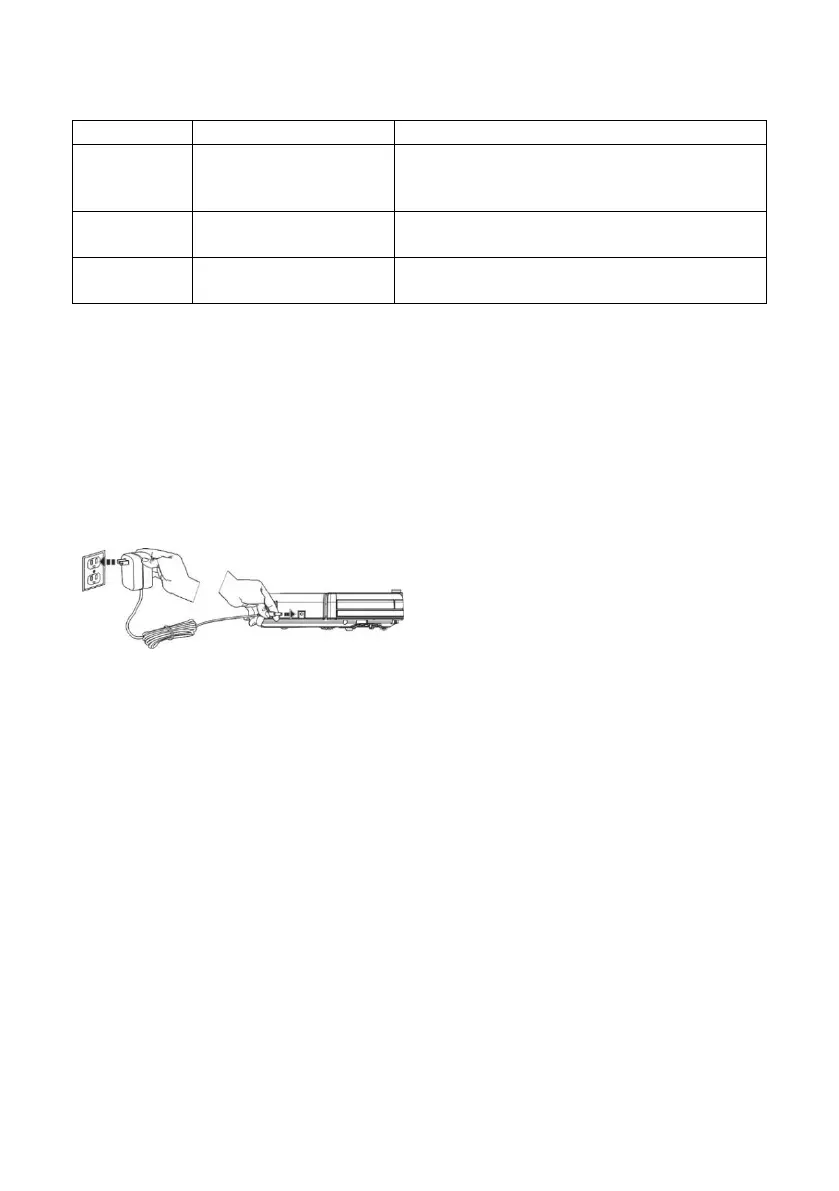 battery. During charging, the blue LEDs on the vacuum cleaner blink, the LEDs light up when the