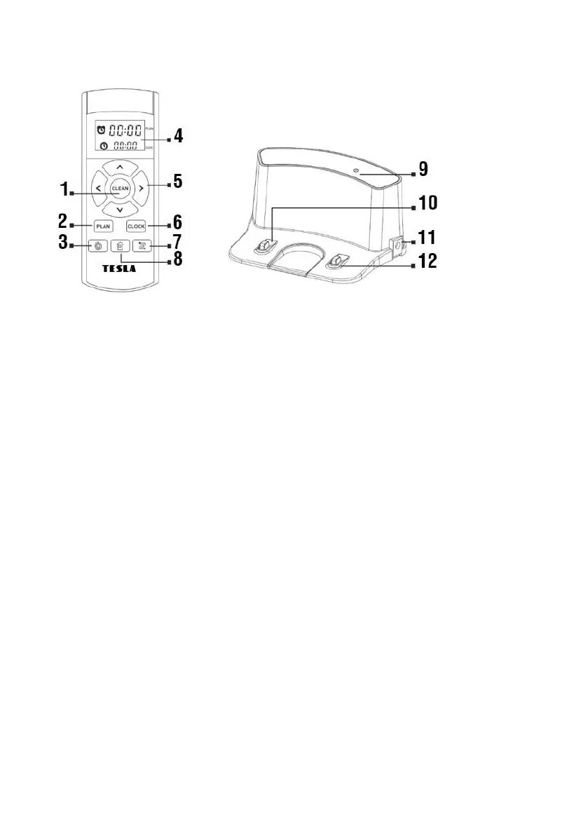 Tlačítko : pohyb z nastavení hodin na minuty, při nastavení plánu úklidu a nastavení času