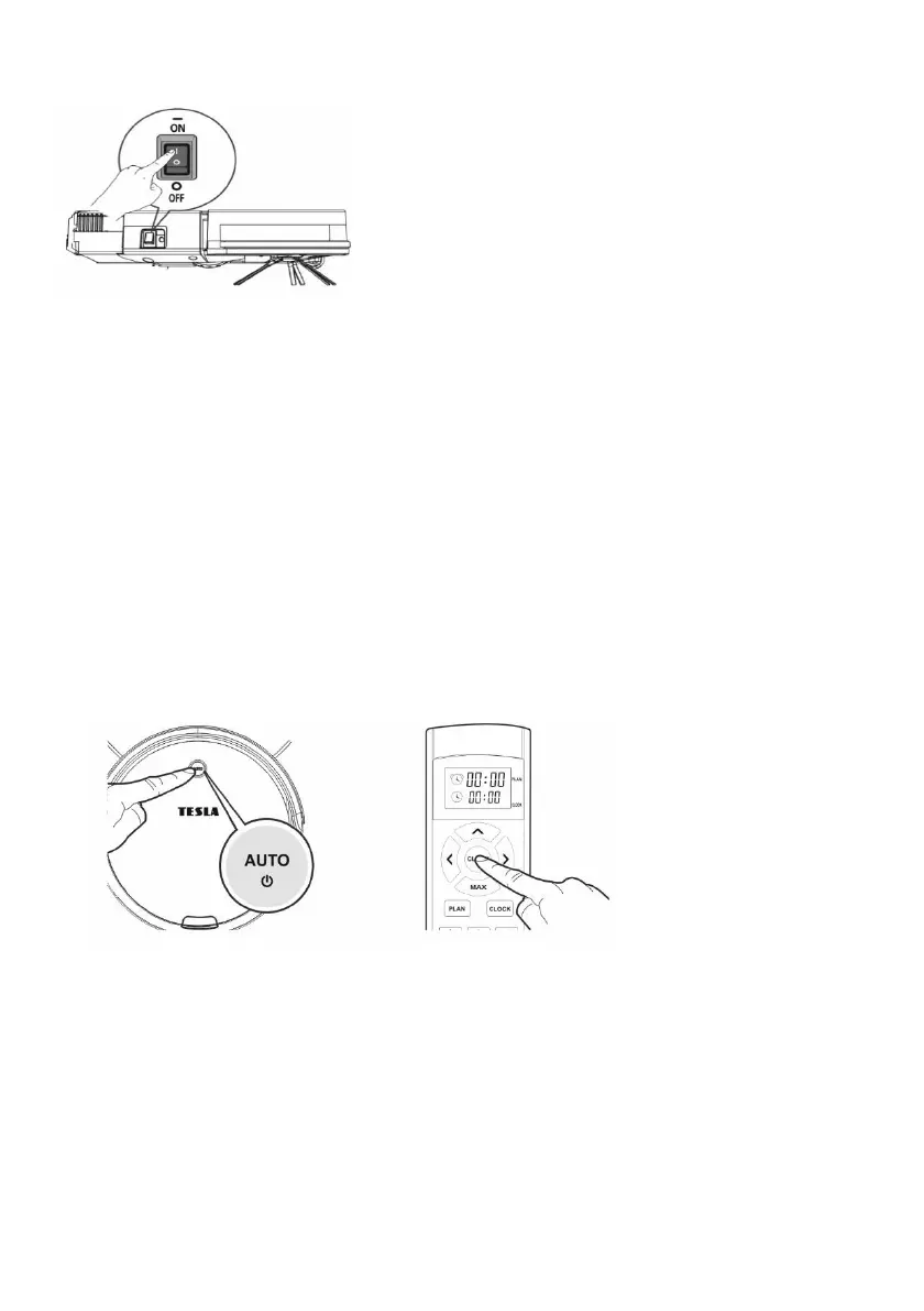 12. Stisknutím tlačítka „AUTO“ na vysavači nebo stisknutím tlačítka „7“ na dálkovém ovládání uvedete