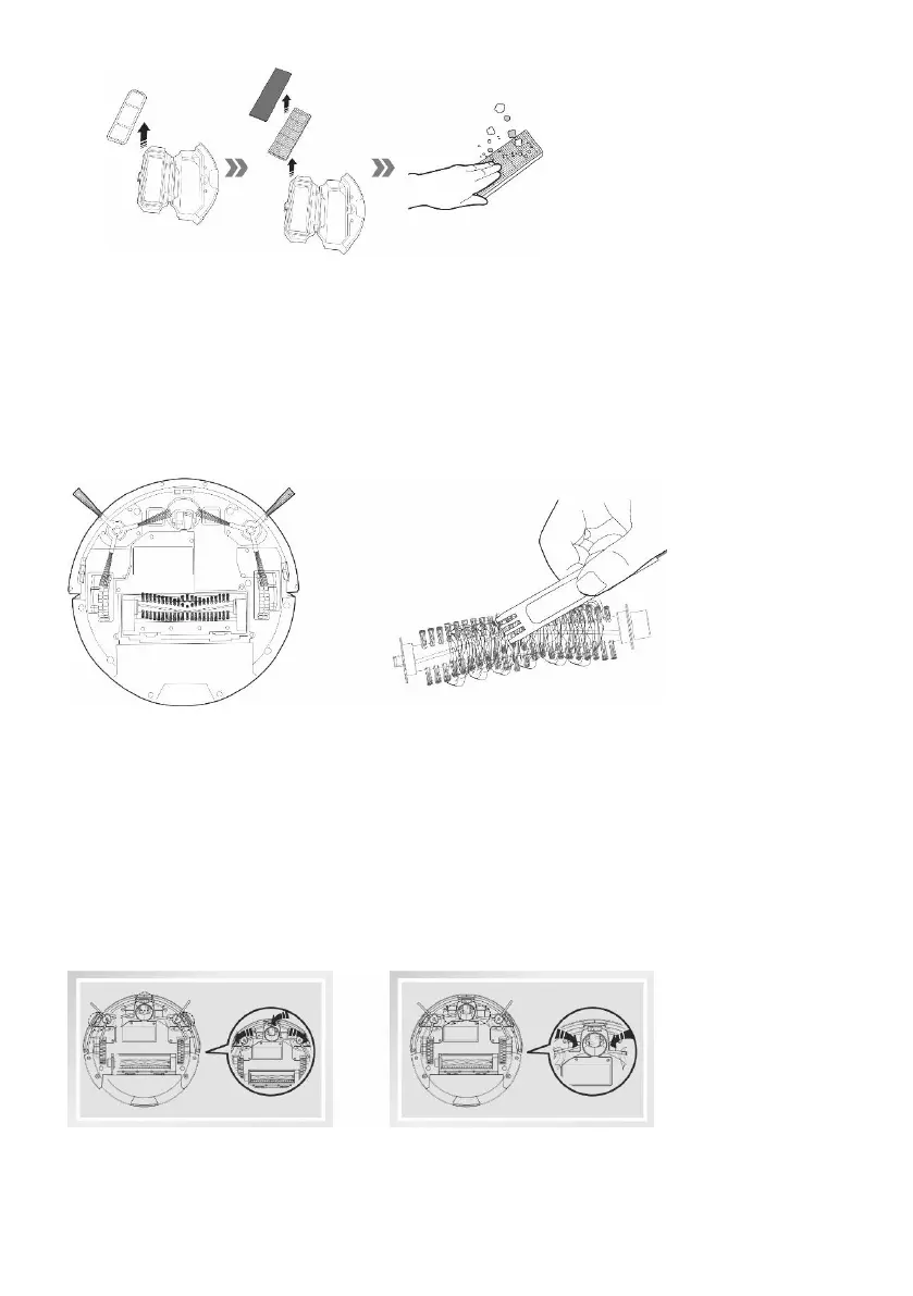 Check at least once a week both side brushes together with the air intake and remove the worn hair
