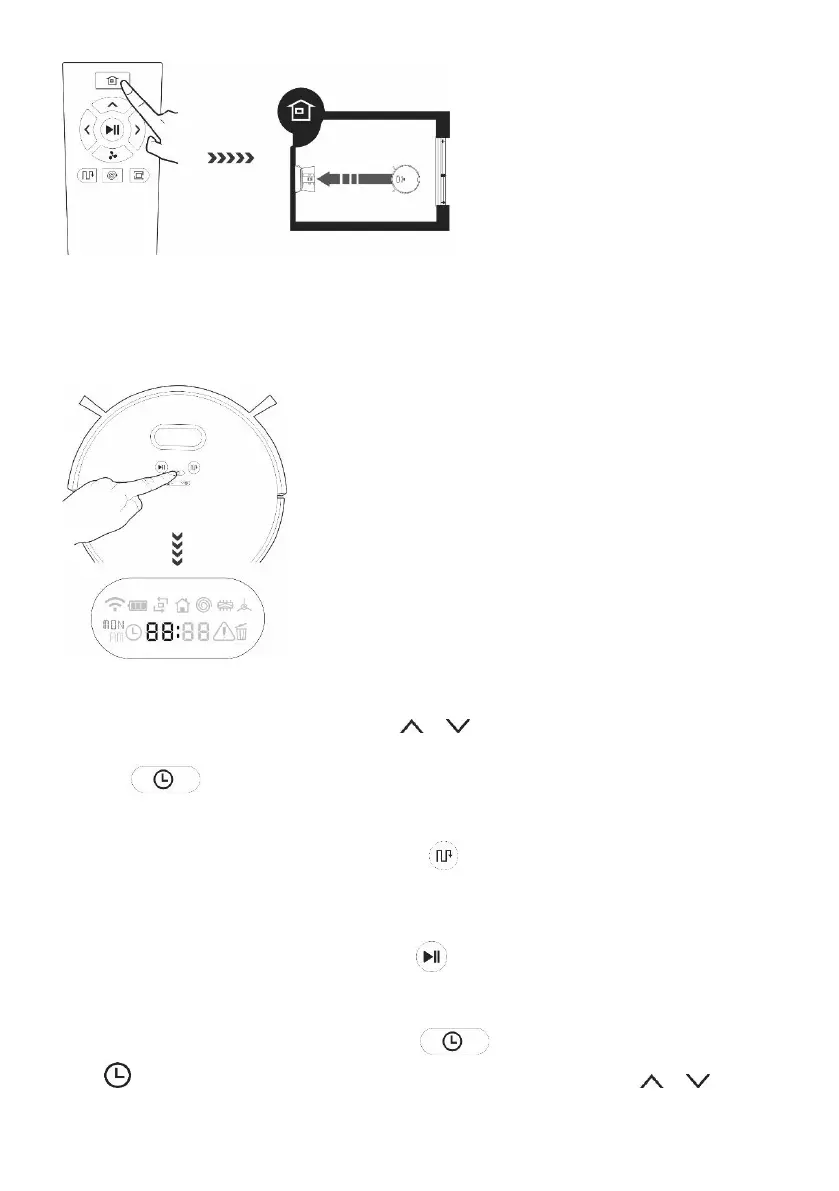 Pro nastavení času úklidu stiskněte krátce tlačítko , uslyšíte pípnutí, na displeji se zobrazí