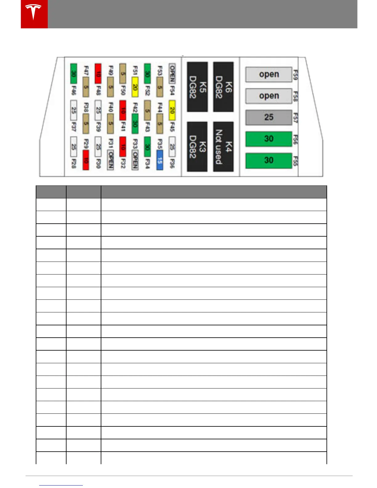 30 25 A Window lift motor (right front)
