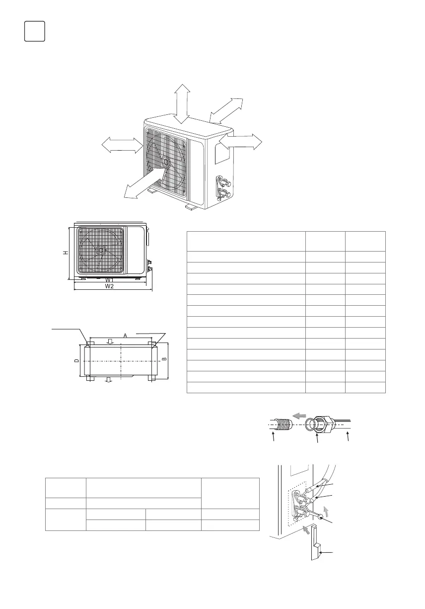 Dimension drawing of outdoor unit installation