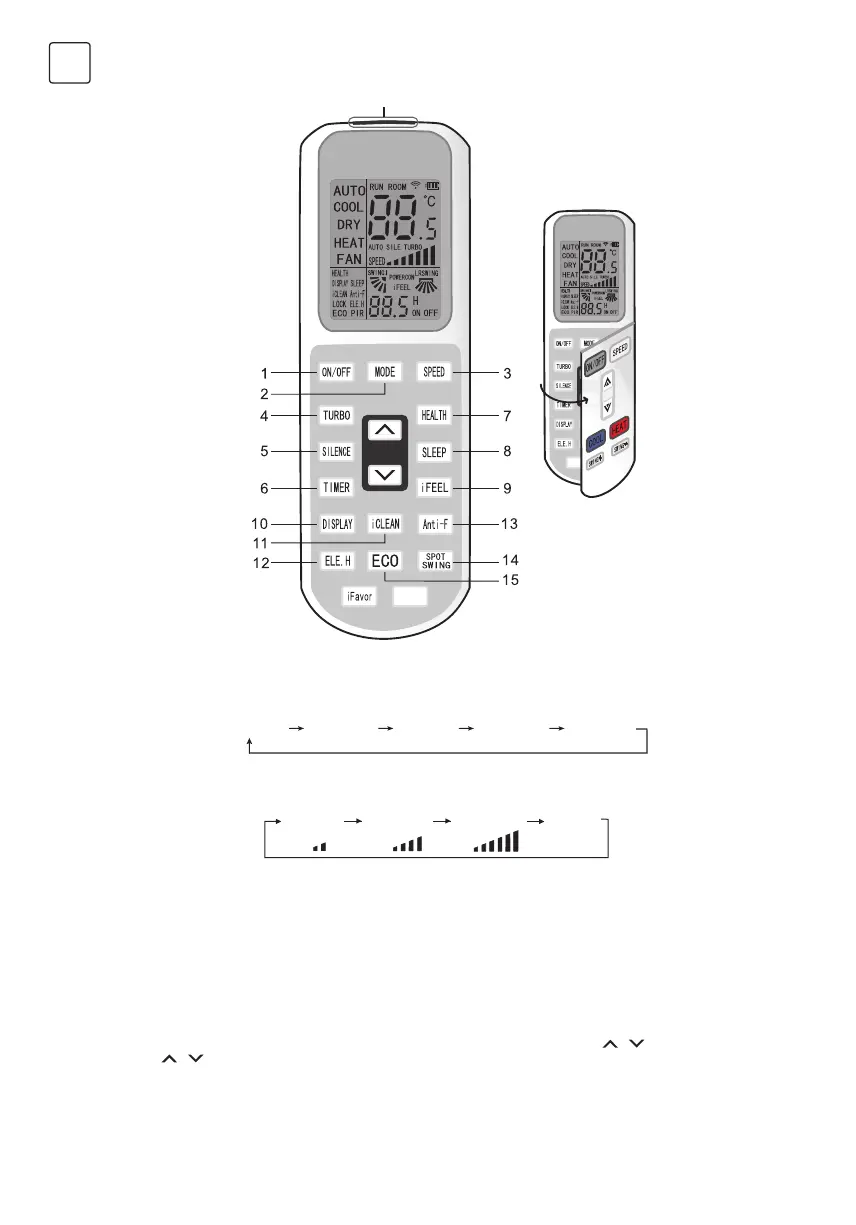 • Set turbo on or off(the characters of turbo will appear or disappear)by pressing this key under cooling or