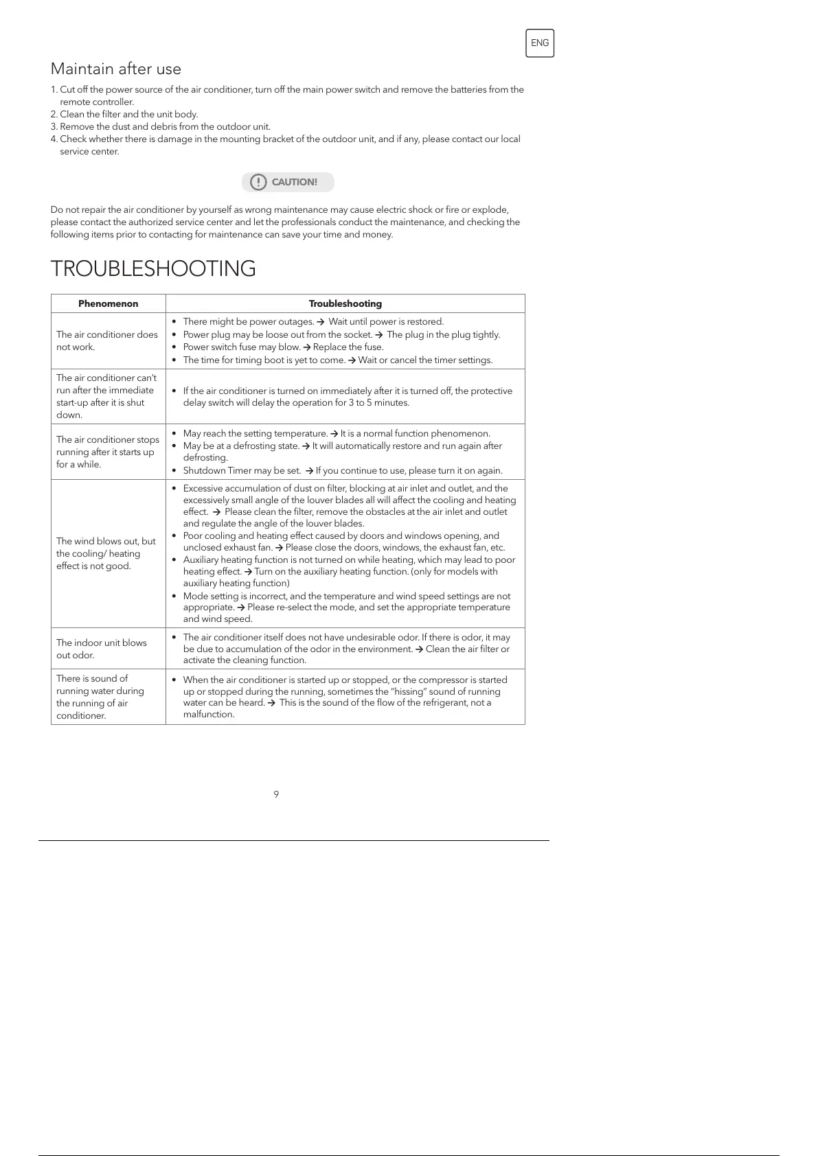 Do not repair the air conditioner by yourself as wrong maintenance may cause electric shock or fire or explode,