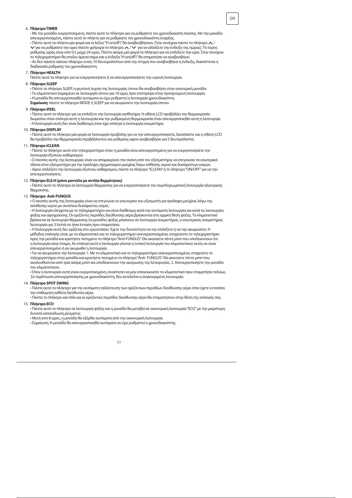 • Η λειτουργία ελέγχεται με το τηλεχειριστήριο και είναι διαθέσιμη κατά την αυτόματη λειτουργία και κατά τις λειτουργίες