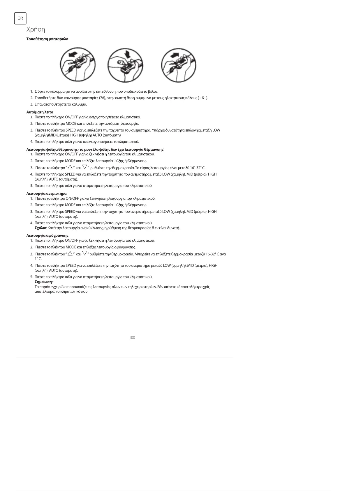 ” και ” ρυθμίστε την θερμοκρασία. Μπορείτε να επιλέξετε θερμοκρασία μεταξύ 16-32° C ανά