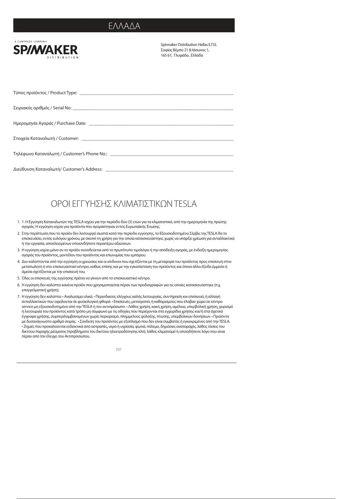 ΟΡΟΙ ΕΓΓΥΗΣΗΣ ΚΛΙΜΑΤΙΣΤΙΚΩΝ TESLA