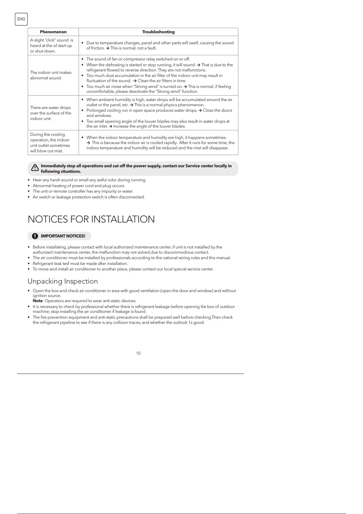• Before installating, please contact with local authorized maintenance cenler, if unit is not installed by the