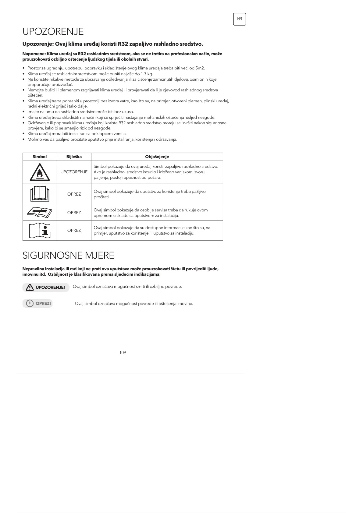 Upozorenje: Ovaj klima uređaj koristi R32 zapaljivo rashladno sredstvo.