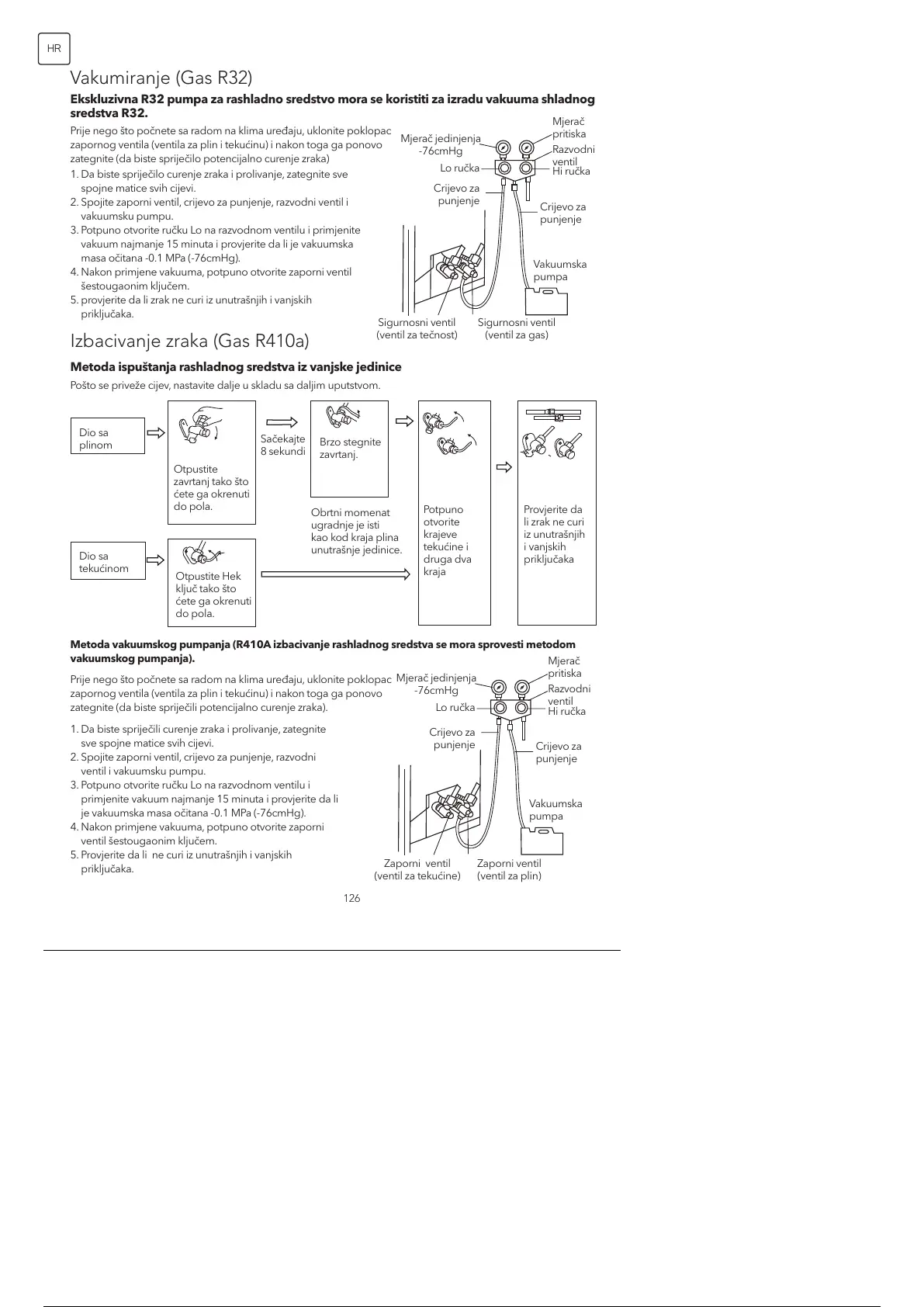 Metoda vakuumskog pumpanja (R410A izbacivanje rashladnog sredstva se mora sprovesti metodom