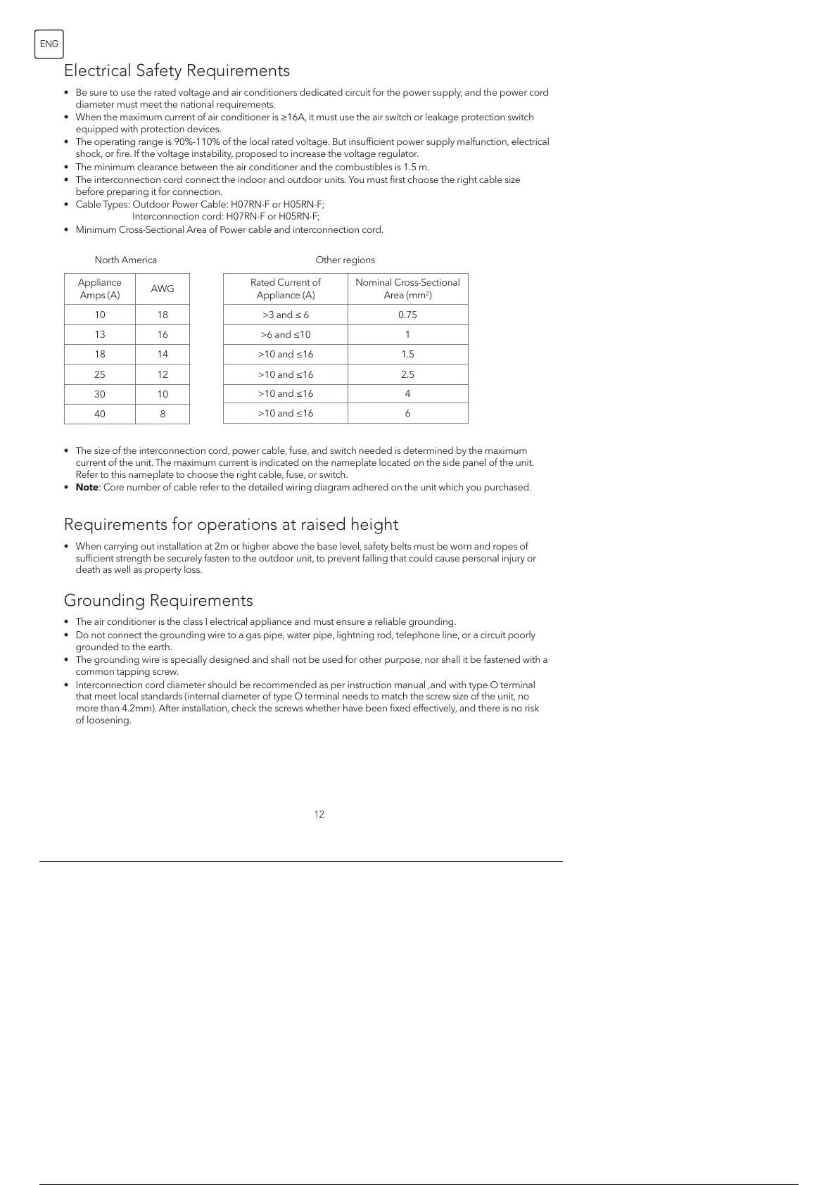 • The interconnection cord connect the indoor and outdoor units. You must first choose the right cable size