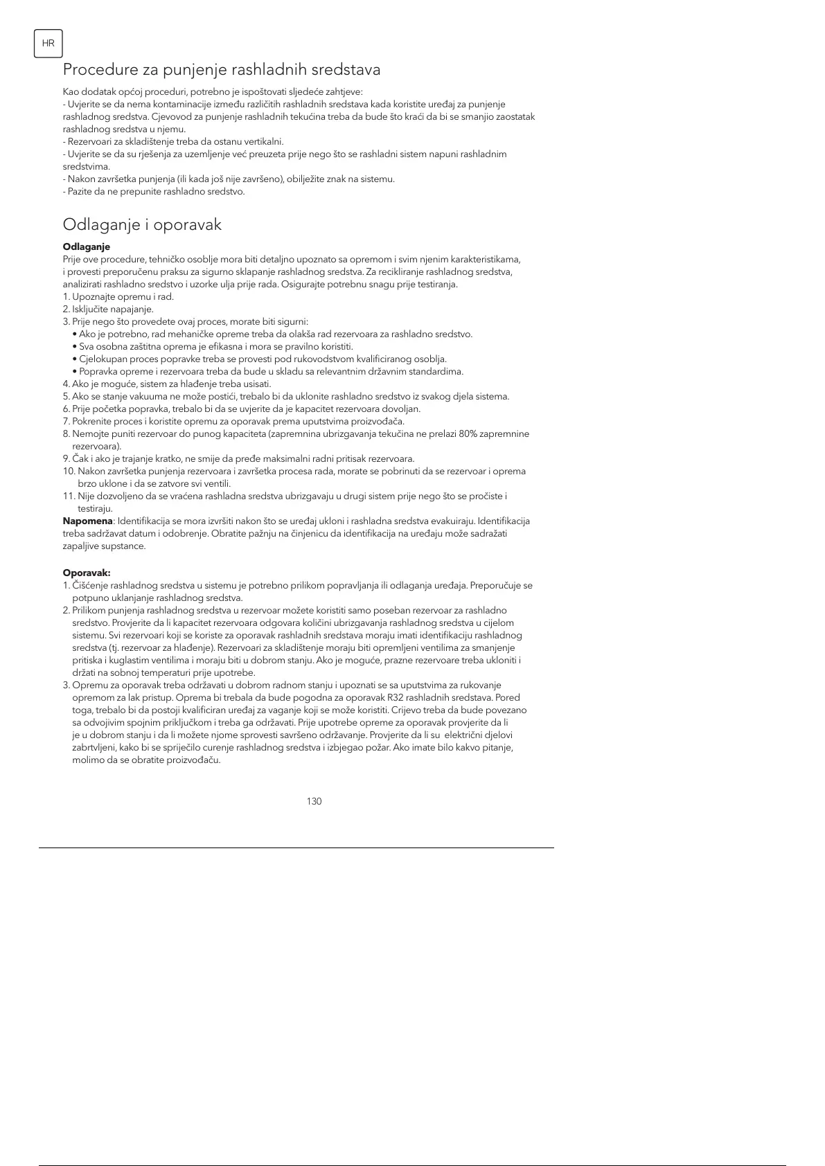 opremom za lak pristup. Oprema bi trebala da bude pogodna za oporavak R32 rashladnih sredstava. Pored