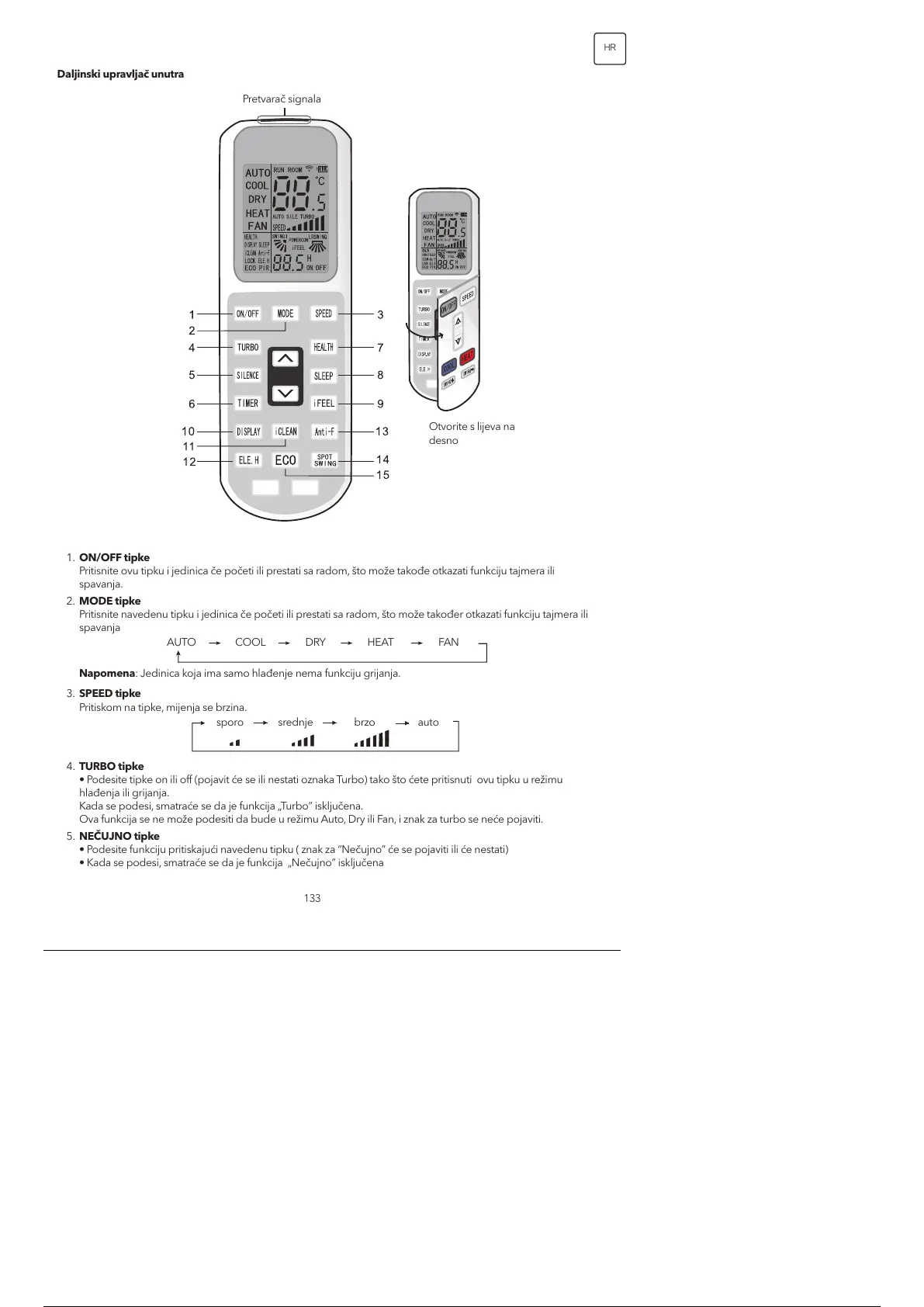 Napomena: Jedinica koja ima samo hlađenje nema funkciju grijanja.