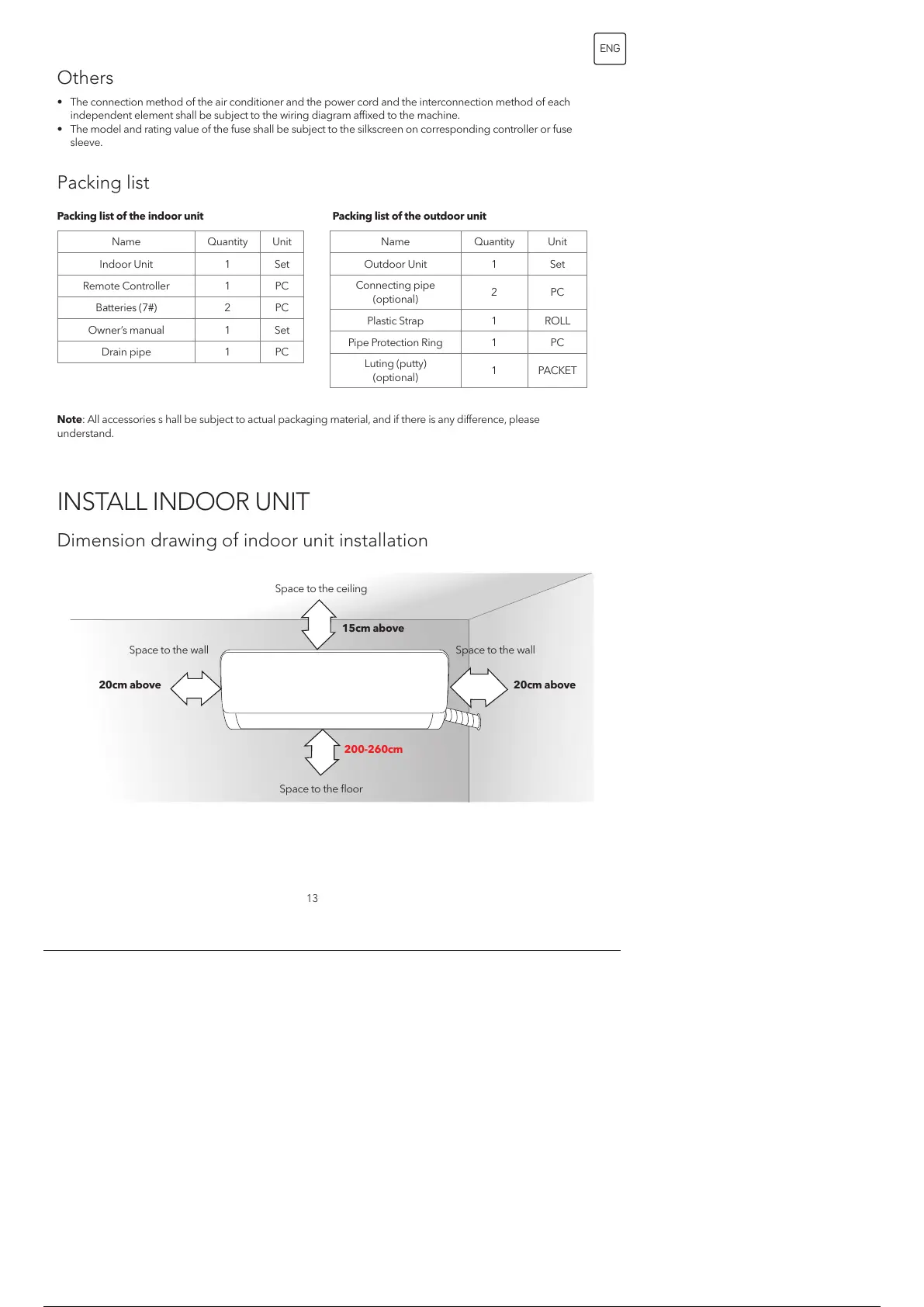 • The connection method of the air conditioner and the power cord and the interconnection method of each