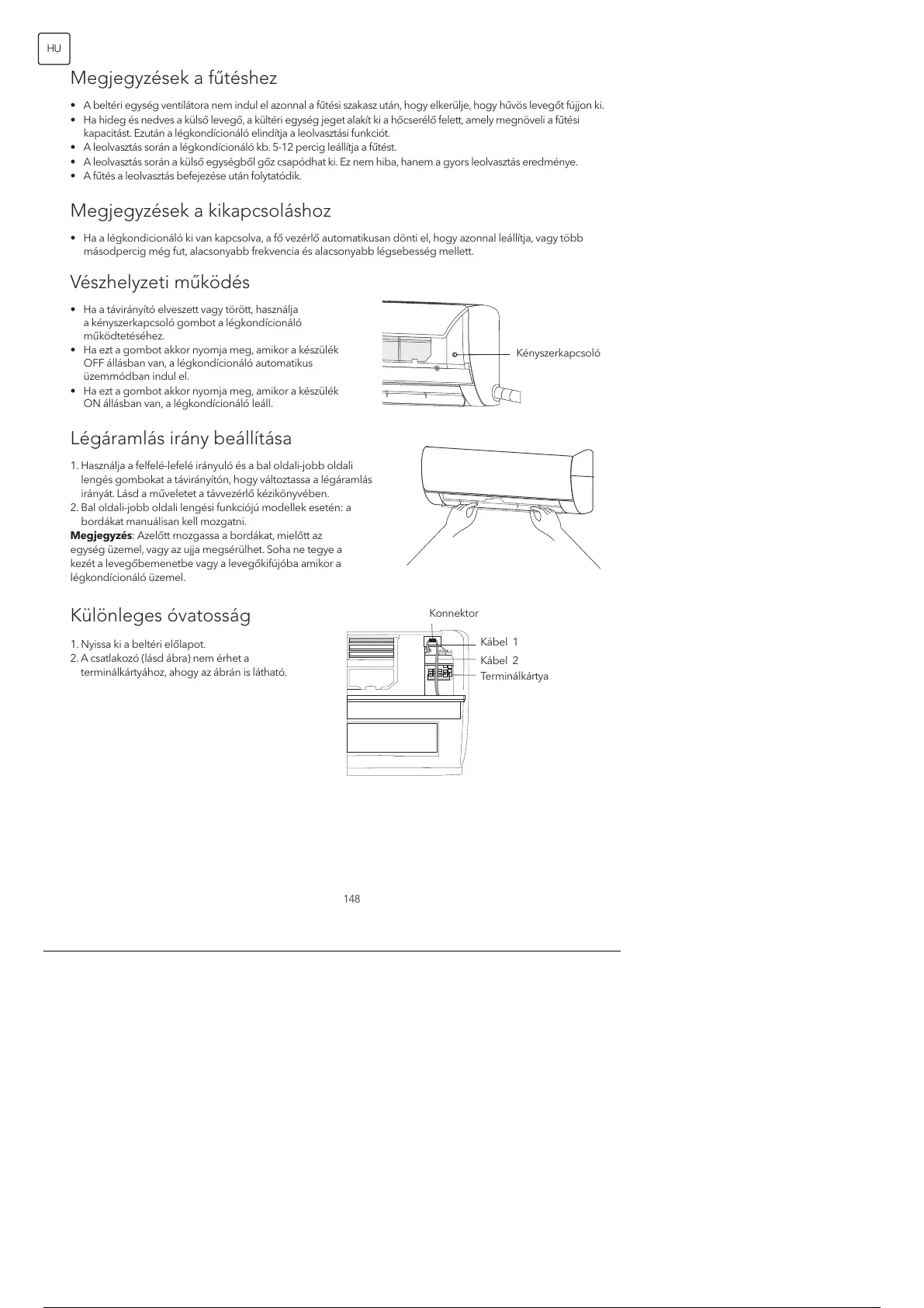 • A leolvasztás során a légkondícionáló kb. 5-12 percig leállítja a fűtést.