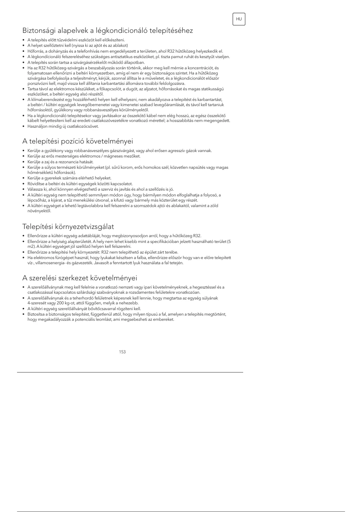 • Ellenőrizze a telepítési hely környezetét: R32 nem telepíthető az épület zárt terébe.