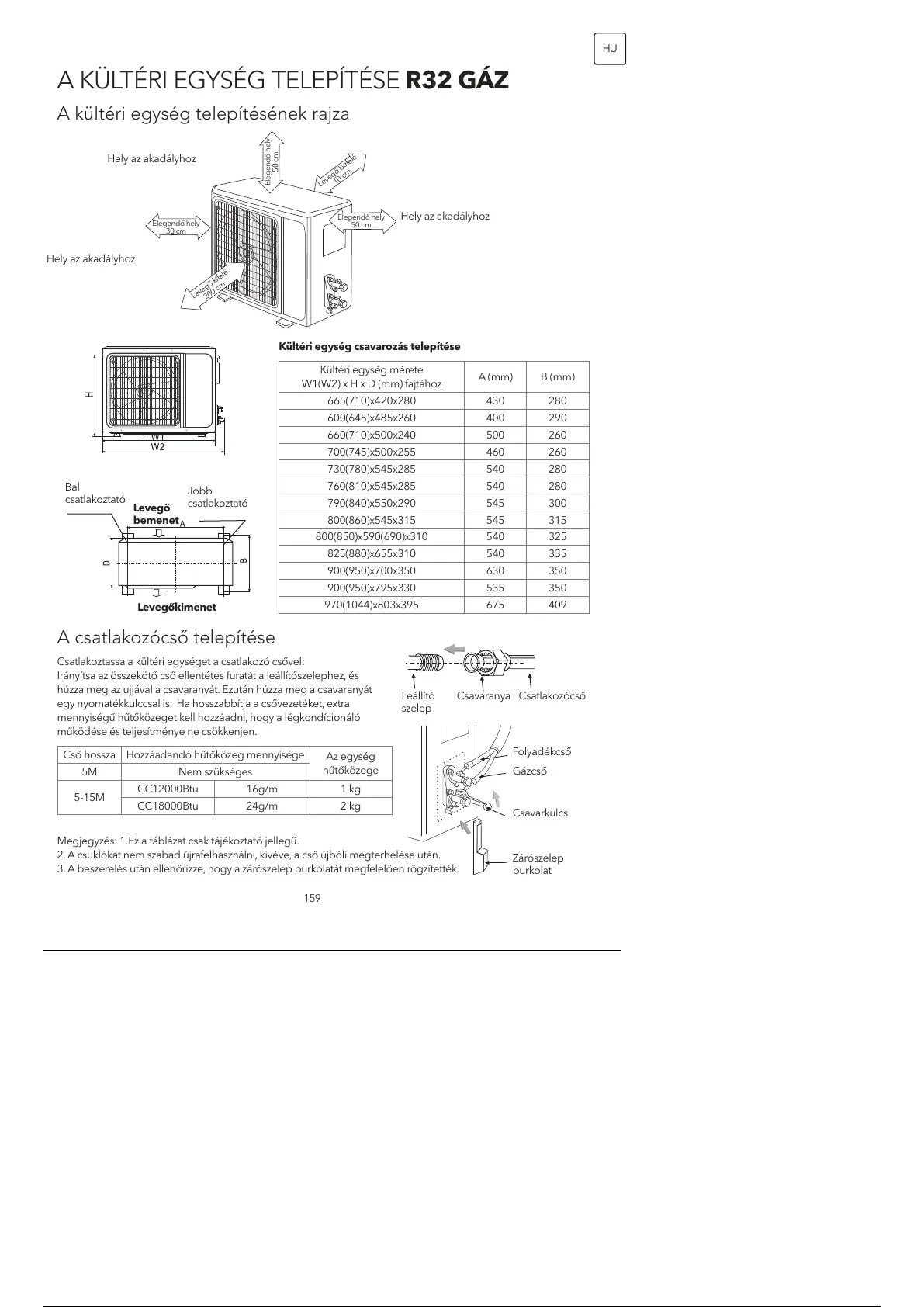A KÜLTÉRI EGYSÉG TELEPÍTÉSE R32 GÁZ