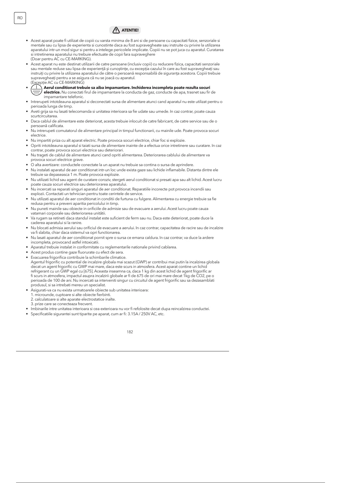 • Acest produs contine gaze fluorurate cu efect de sera.