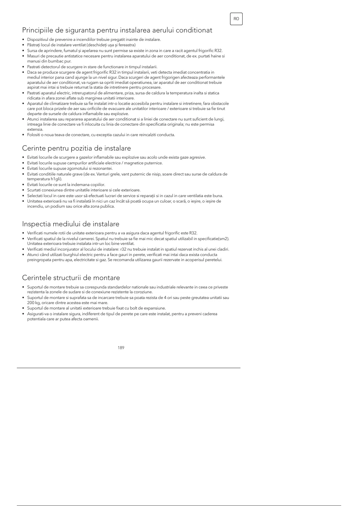 • Daca se produce scurgere de agent frigorific R32 in timpul instalarii, veti detecta imediat concentratia in