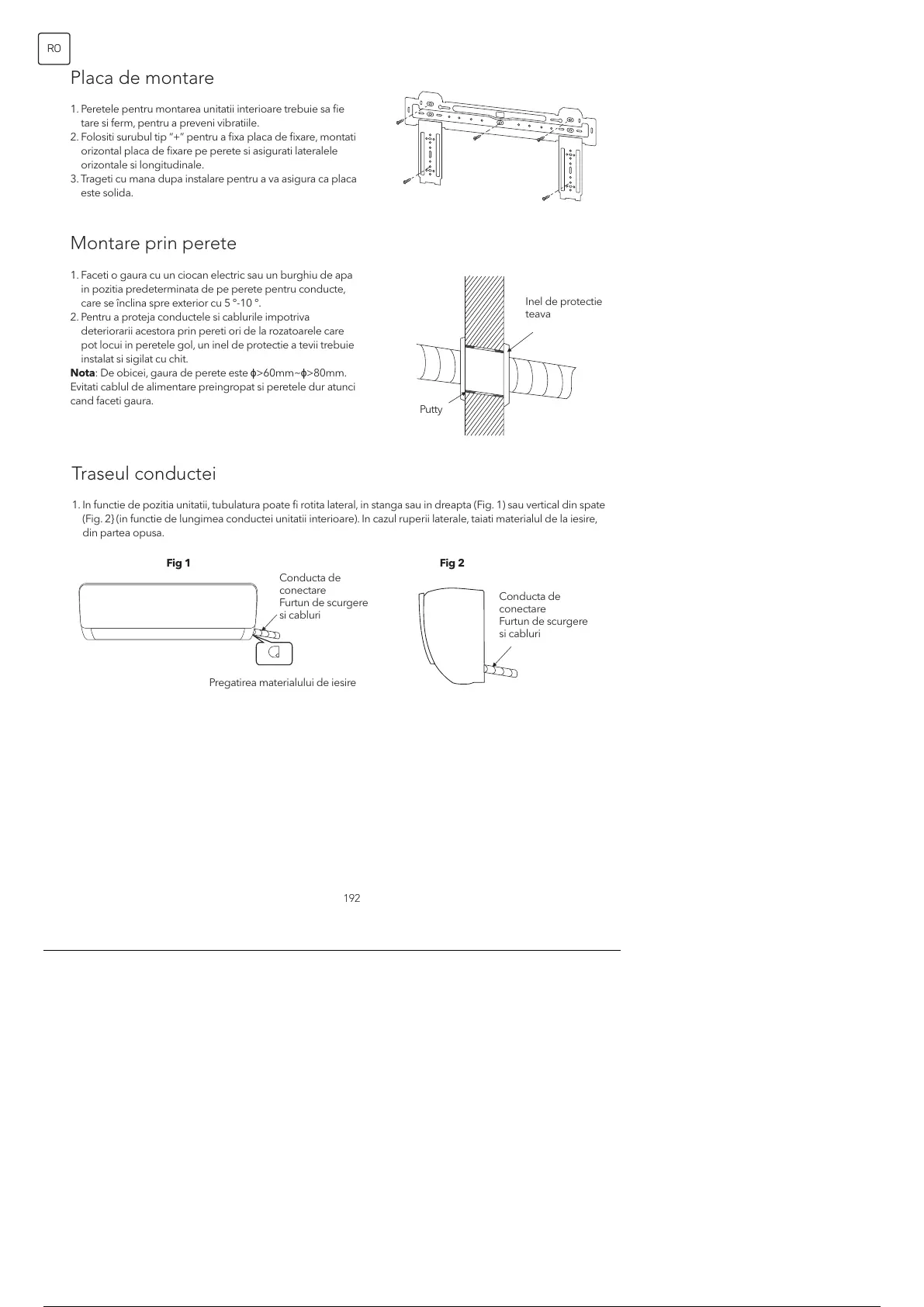 (Fig. 2} (in functie de lungimea conductei unitatii interioare). In cazul ruperii laterale, taiati materialul de la iesire,