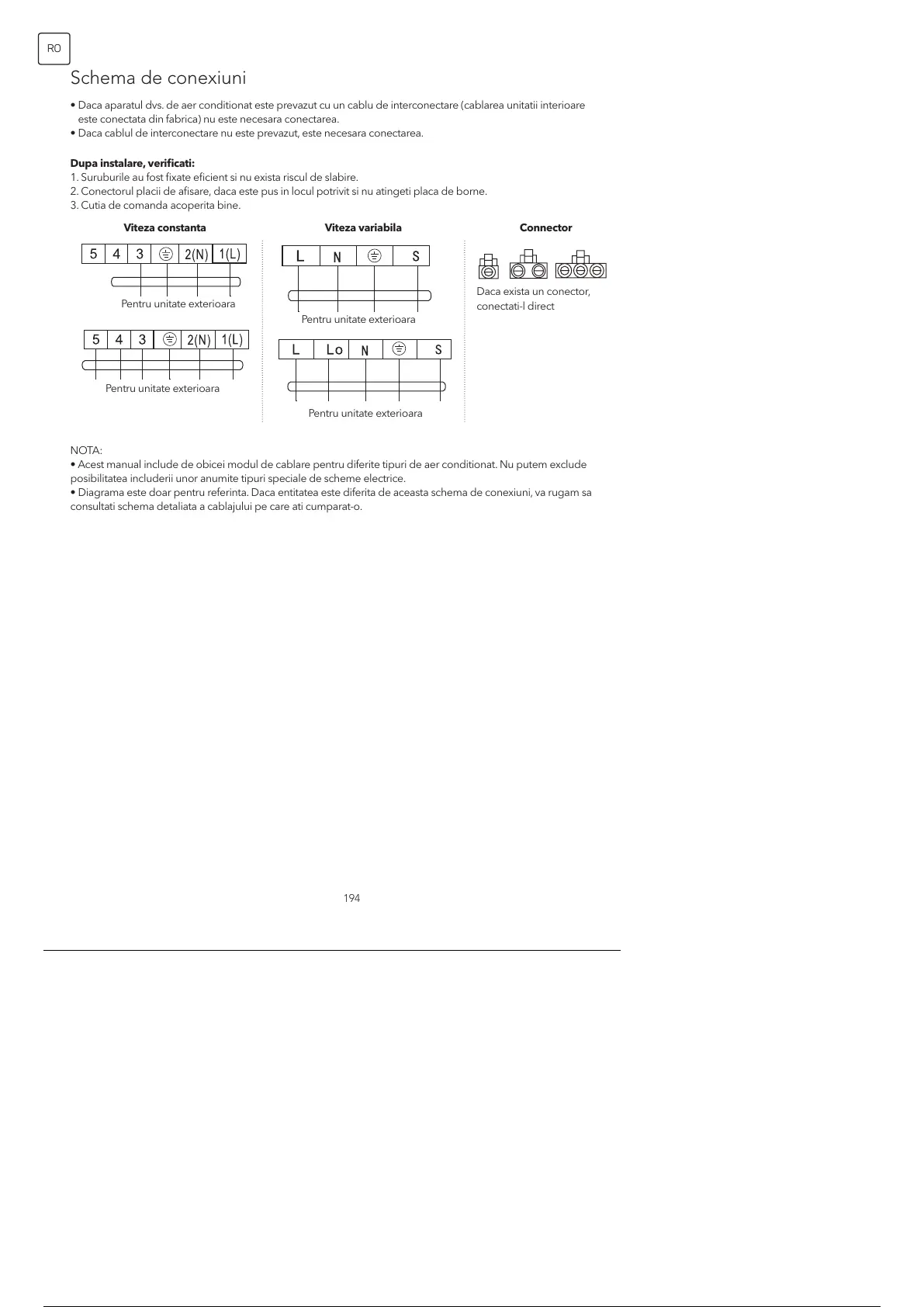 • Acest manual include de obicei modul de cablare pentru diferite tipuri de aer conditionat. Nu putem exclude